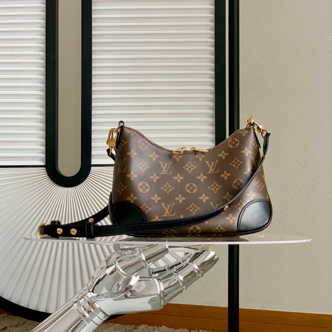 Black Boulogne Monogram Canvas Leather Bag - Leather Crossbody Bag for Women