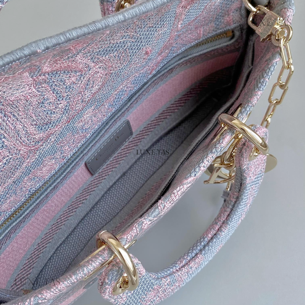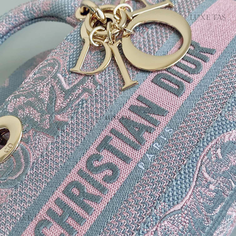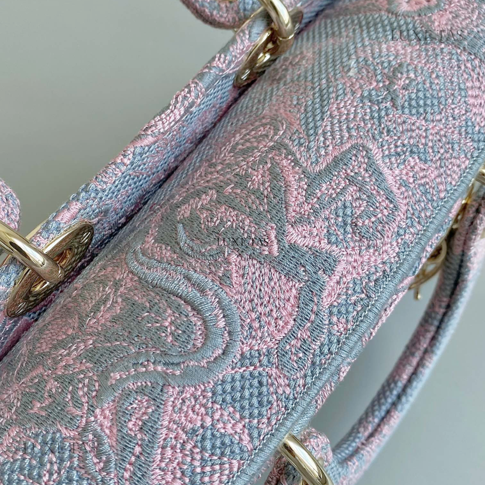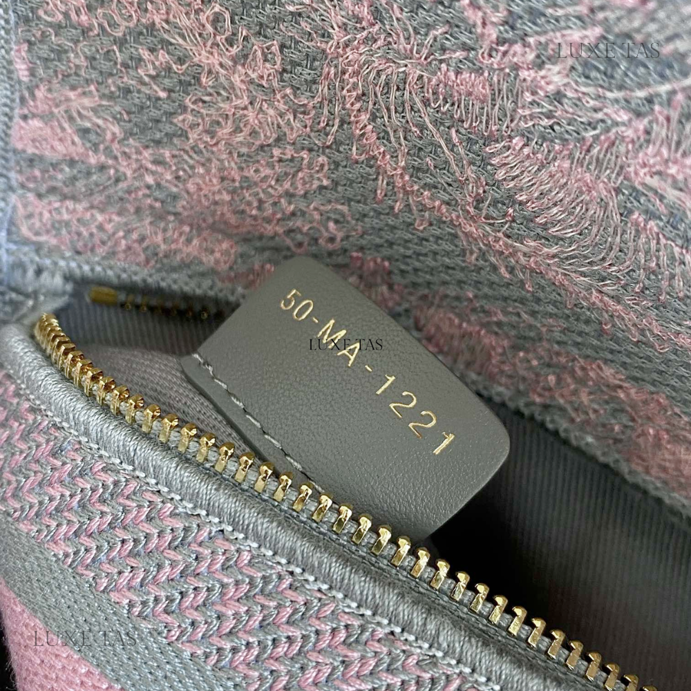 Gray and Pink Toile de Jouy Reverse Mykonos Embroidery Lady D-joy - Handbag for Women