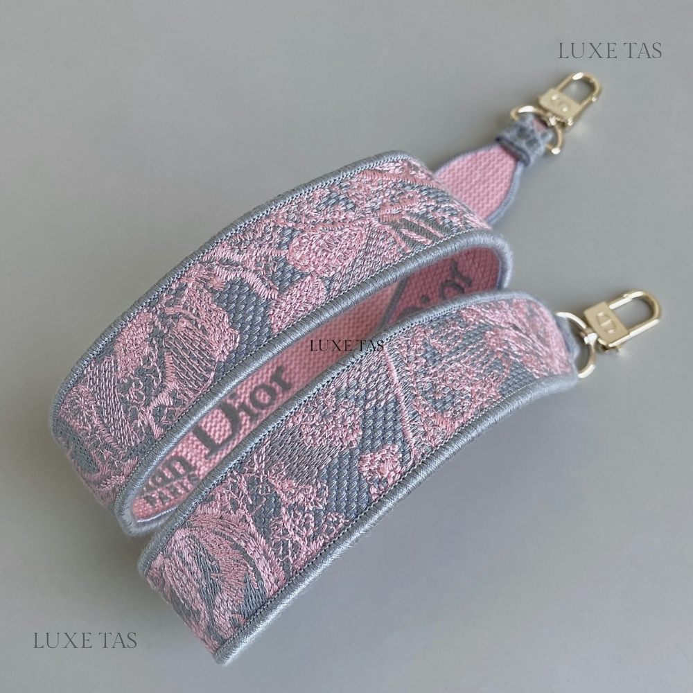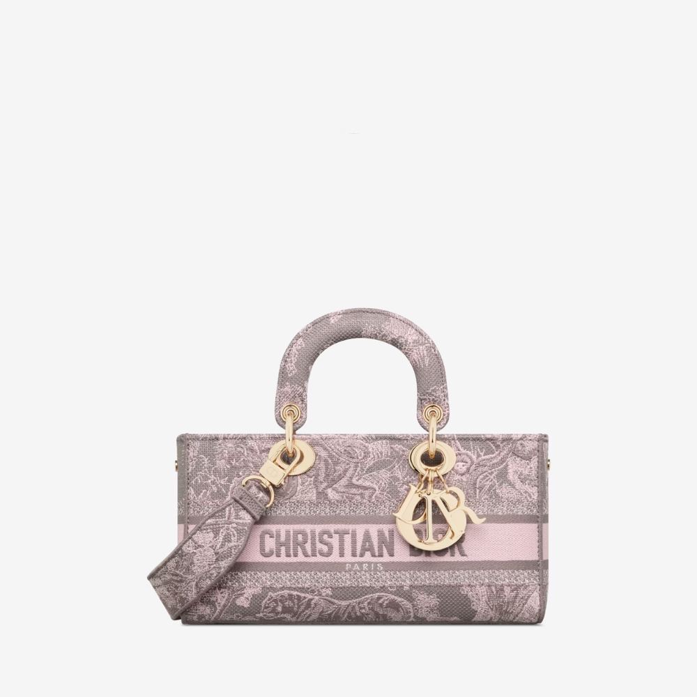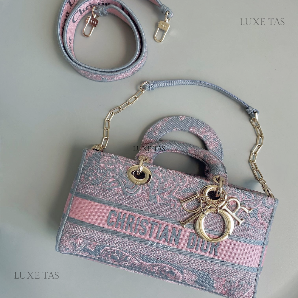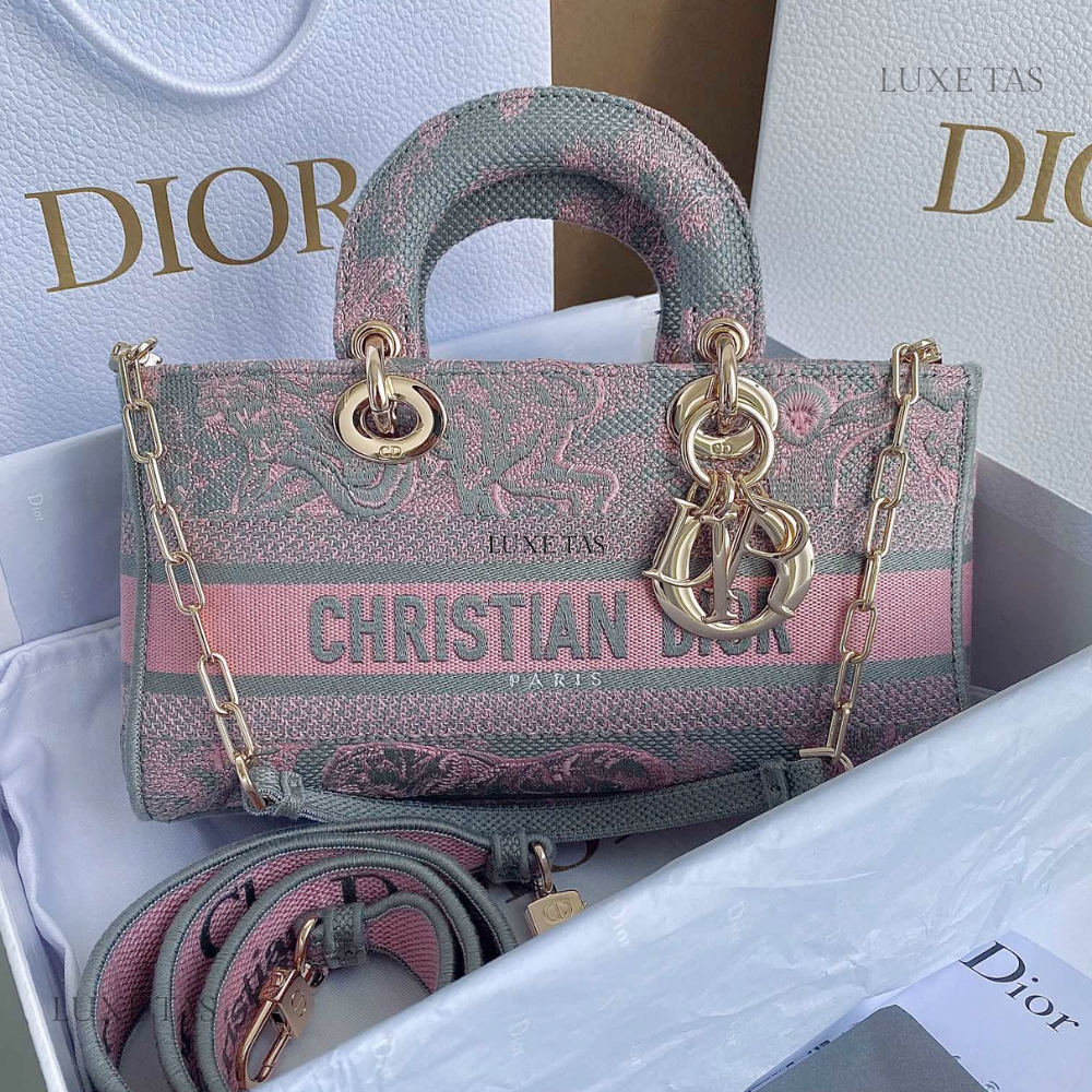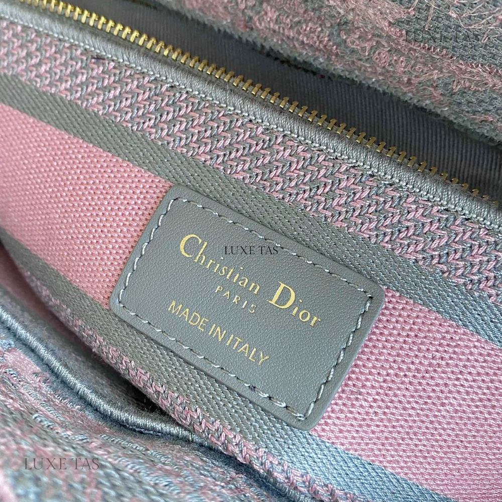 Gray and Pink Toile de Jouy Reverse Mykonos Embroidery Lady D-joy - Handbag for Women