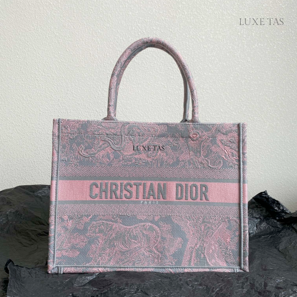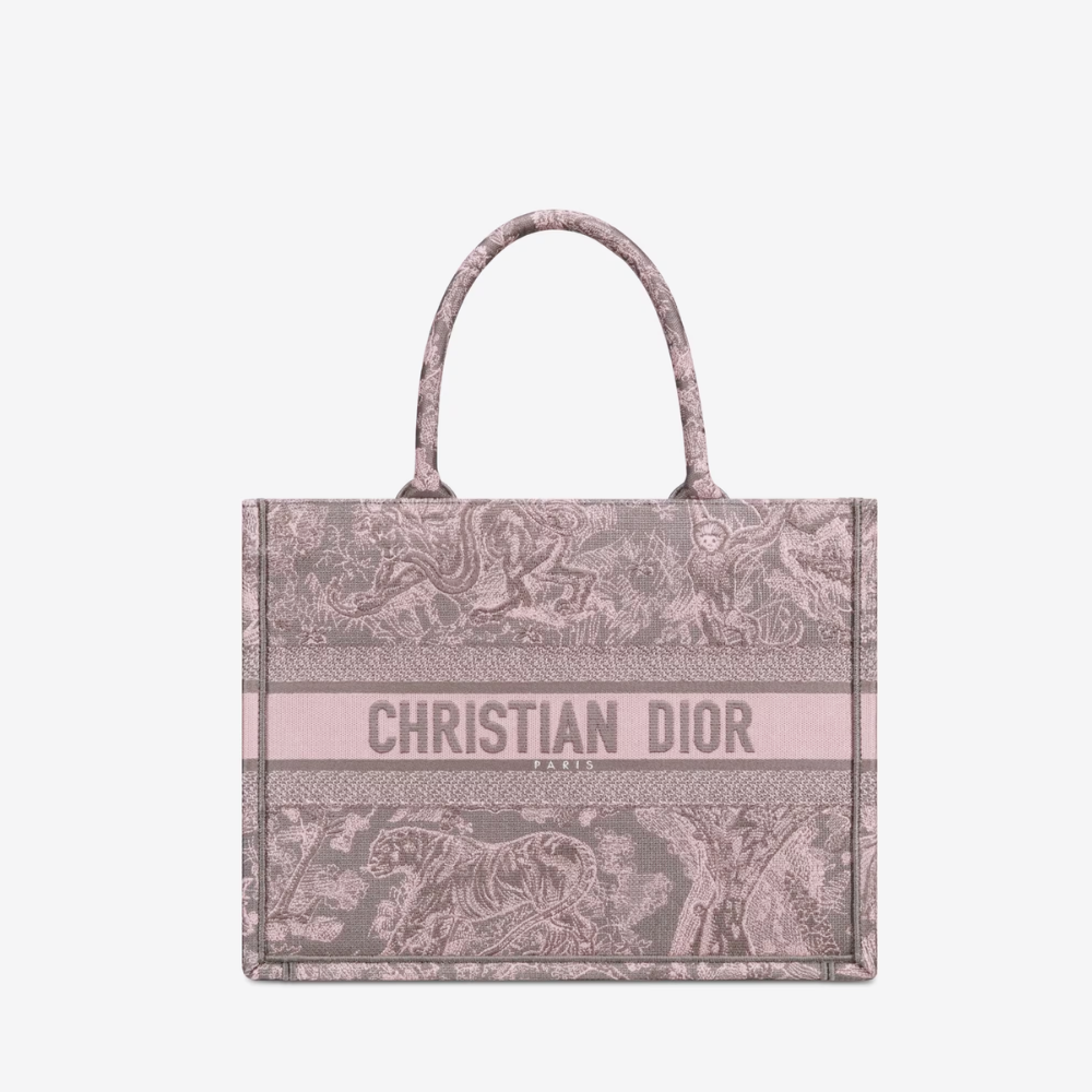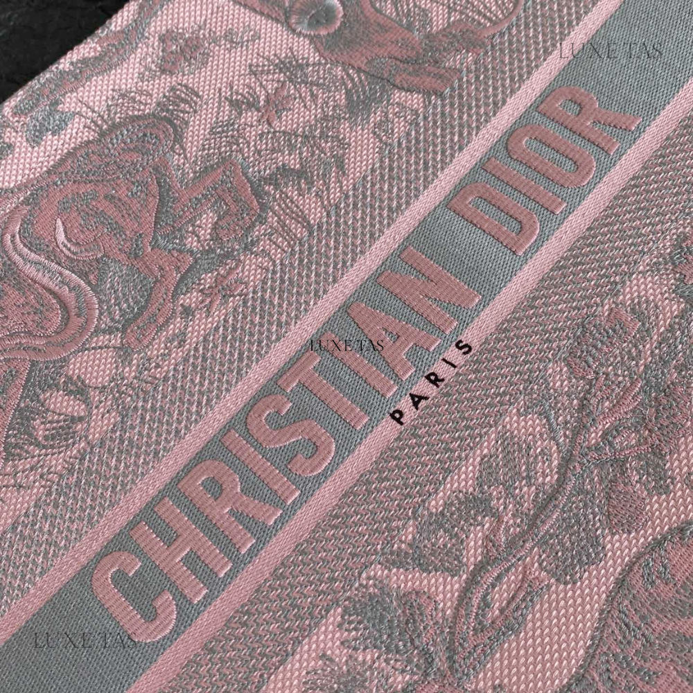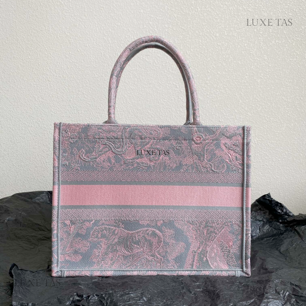 Gray and Pink Toile de Jouy Reverse Mykonos Embroidery Medium D Book Tote - Tote Bag for Women