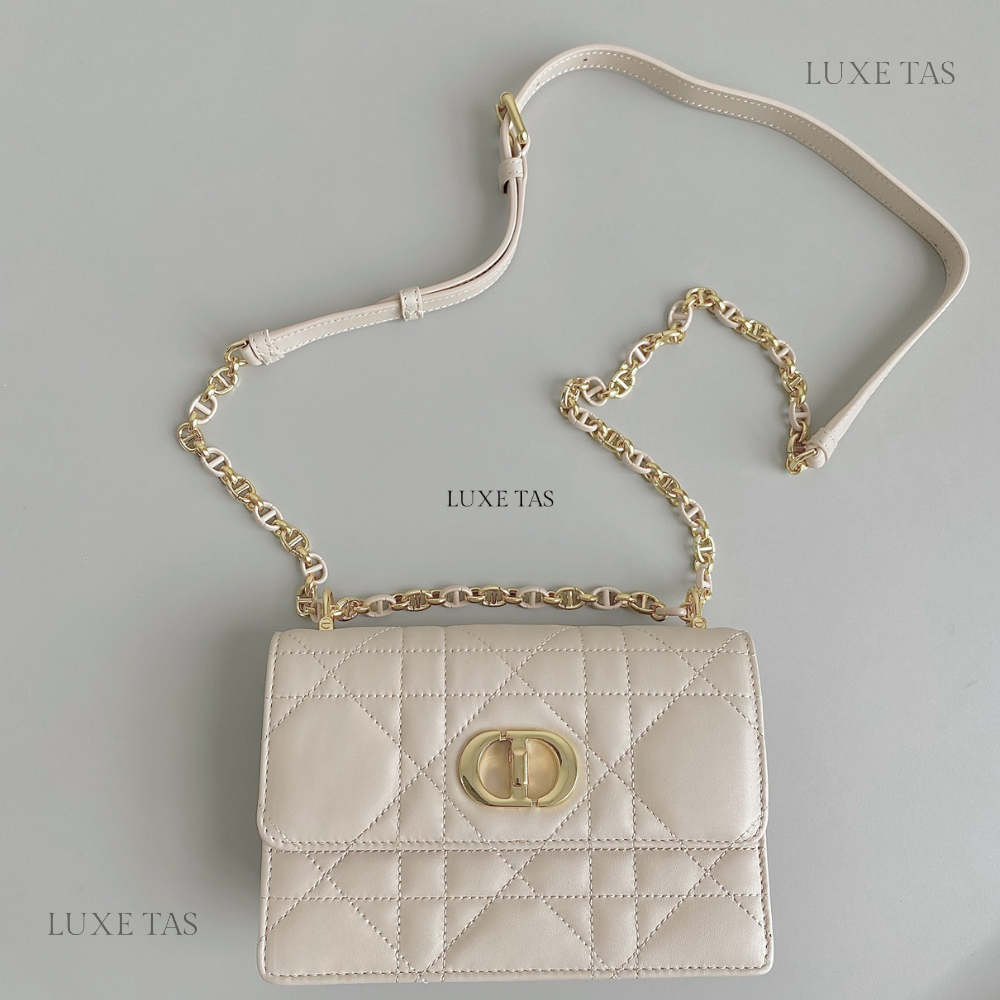 Powder Beige Macrocannage Lambskin Miss Caro Mini Bag - Leather Mini Bag for Women
