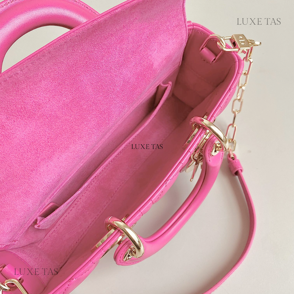Rani Pink Cannage Lambskin Small Lady D-Joy Bag - Leather Handbag for Women