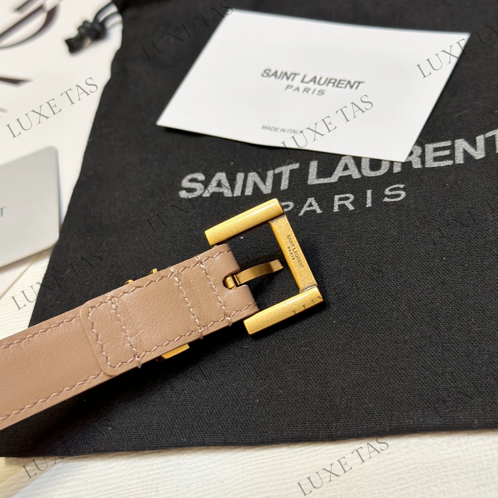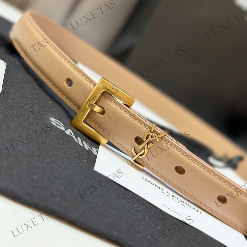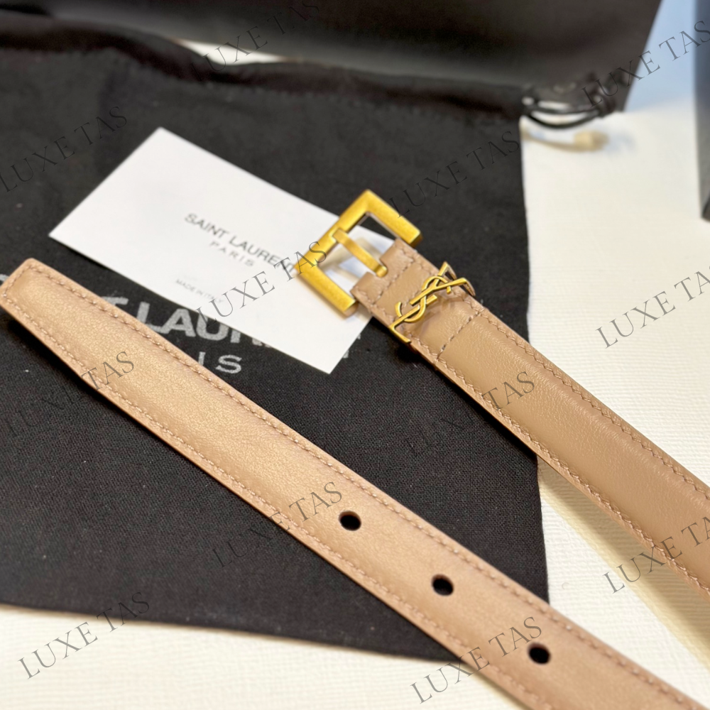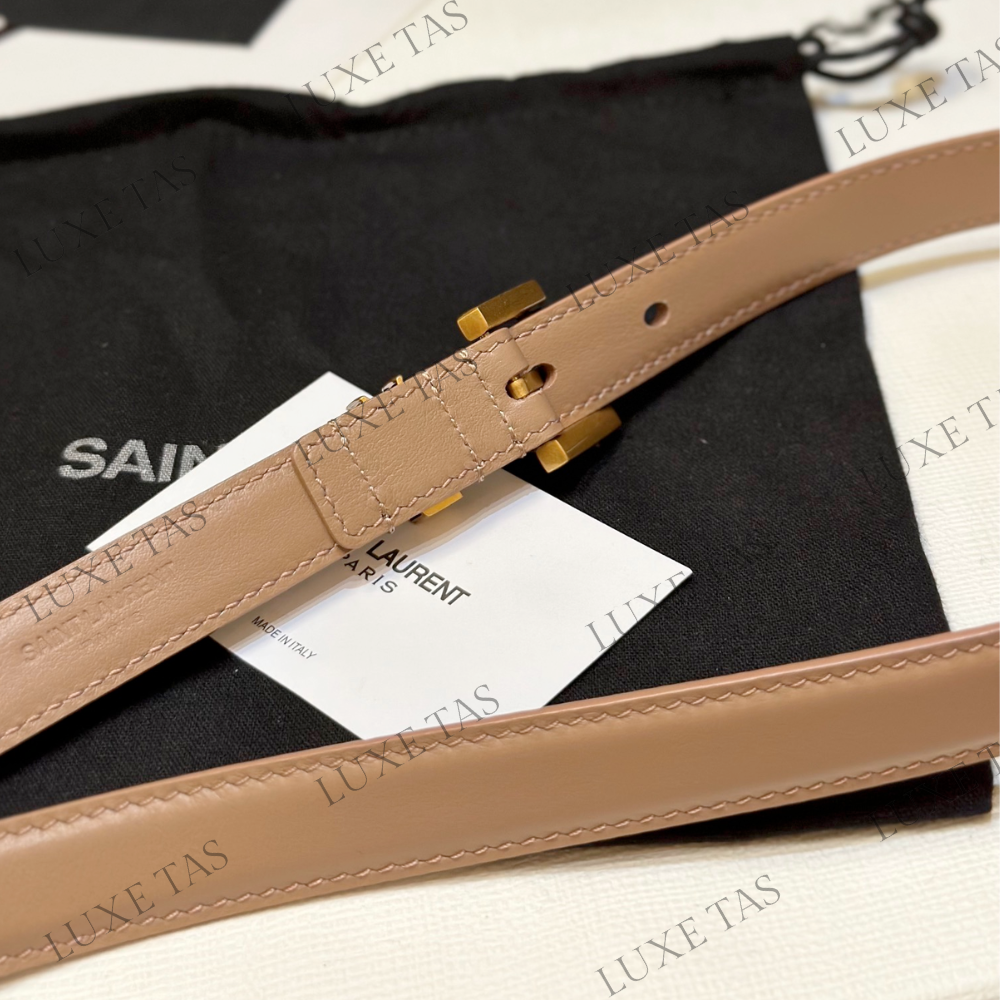Dark Beige Cassandre Thin Belt With Square Buckle - Designer Belts for Women