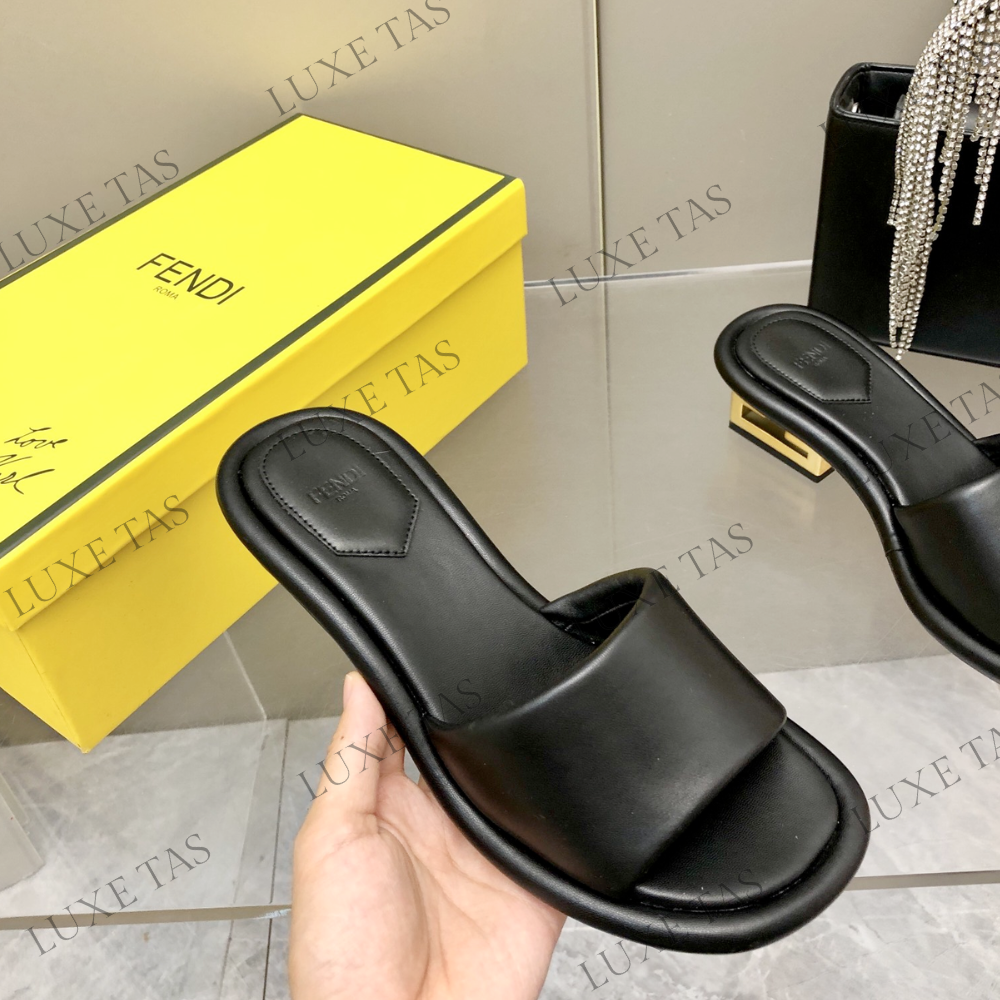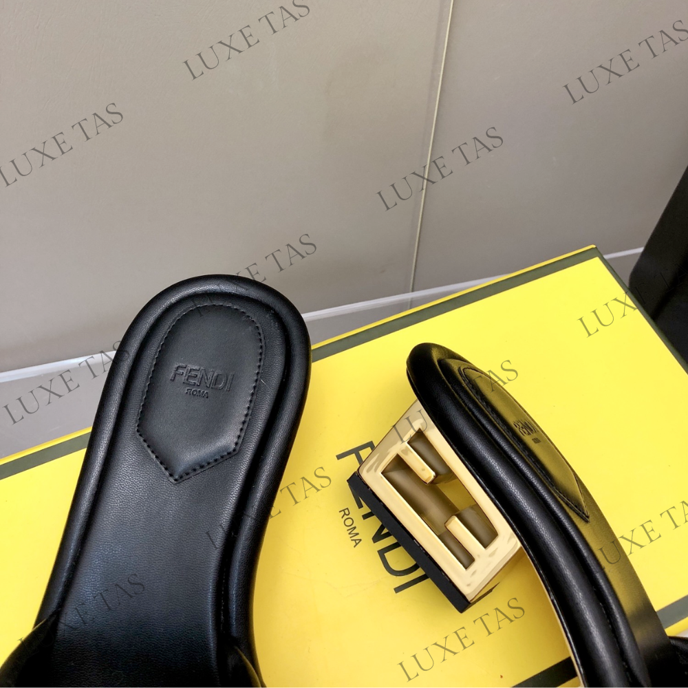 Baguette Black Nappa Leather Slides - Designer Slides & Sandals for Women