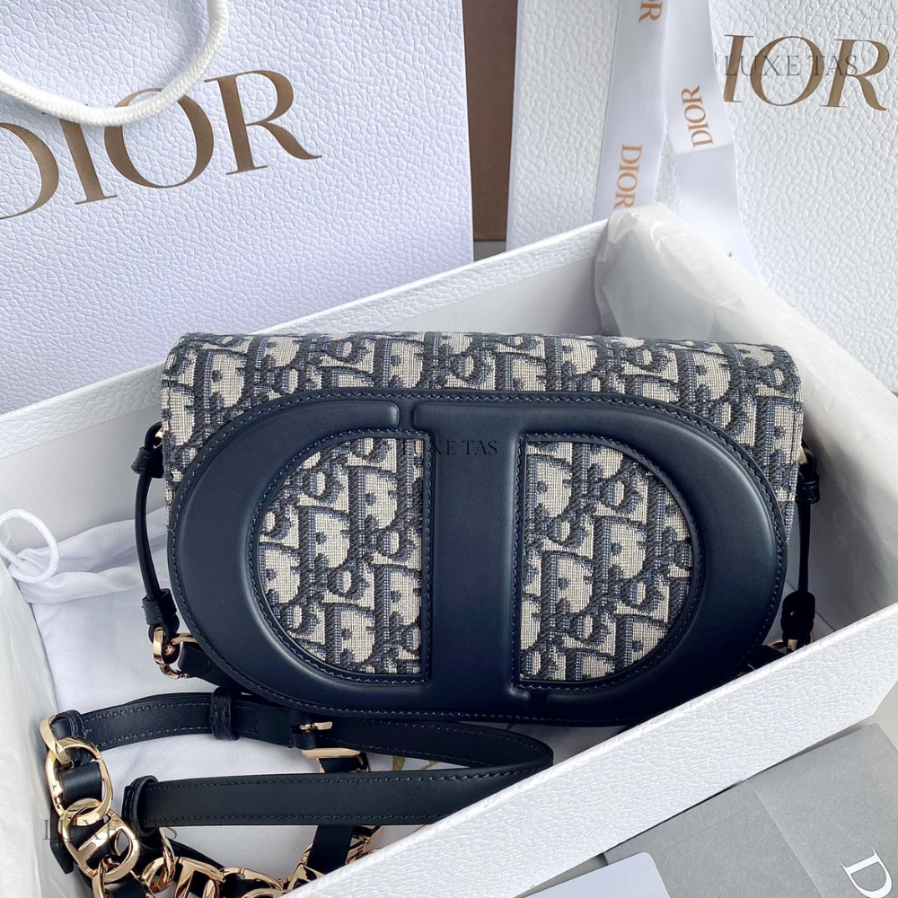 Blue CD Signature Bag With Strap - Leather Crossbody Bag for Women