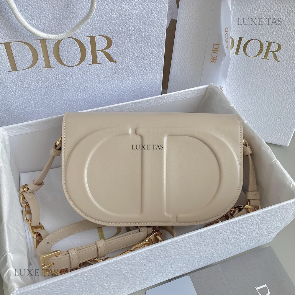 Caramel Beige CD Signature Bag With Strap - Leather Crossbody Bag for Women
