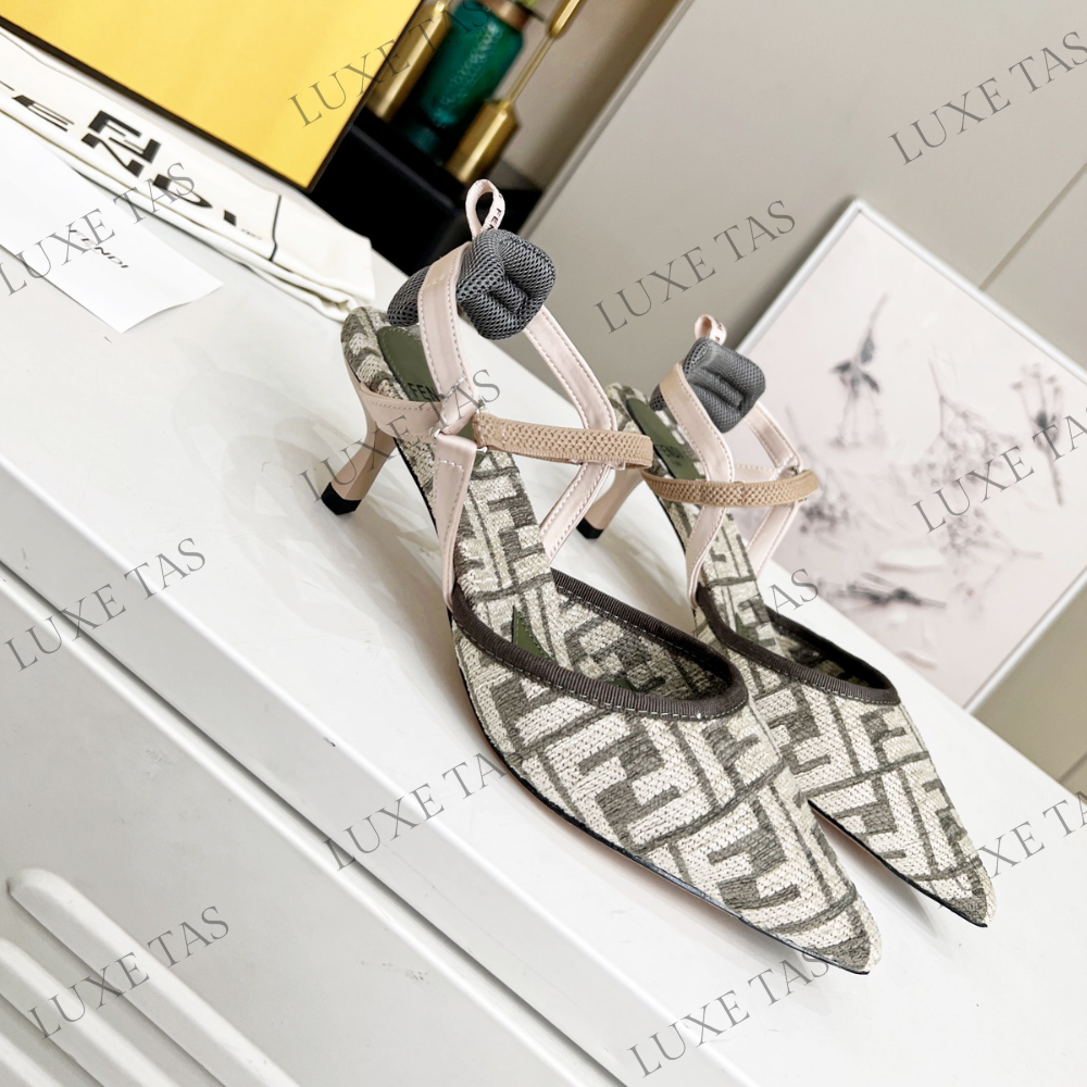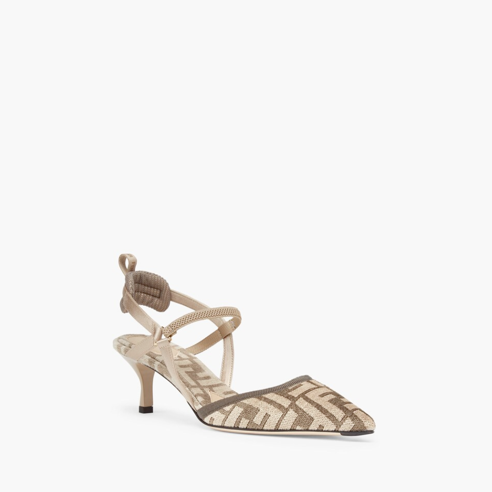 Colibrì Lite Medium-Heel Blue FF Chenille Slingbacks in Beige - Designer Pumps & Platform shoes for Women