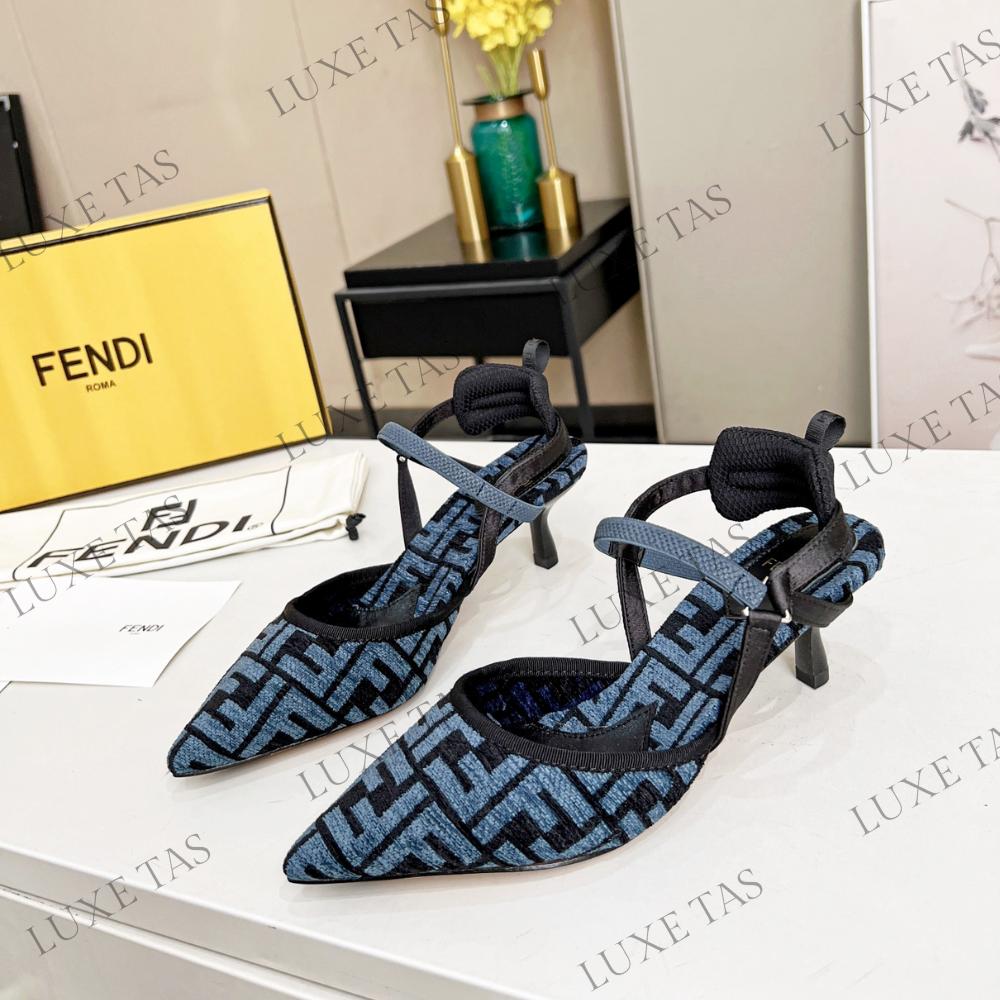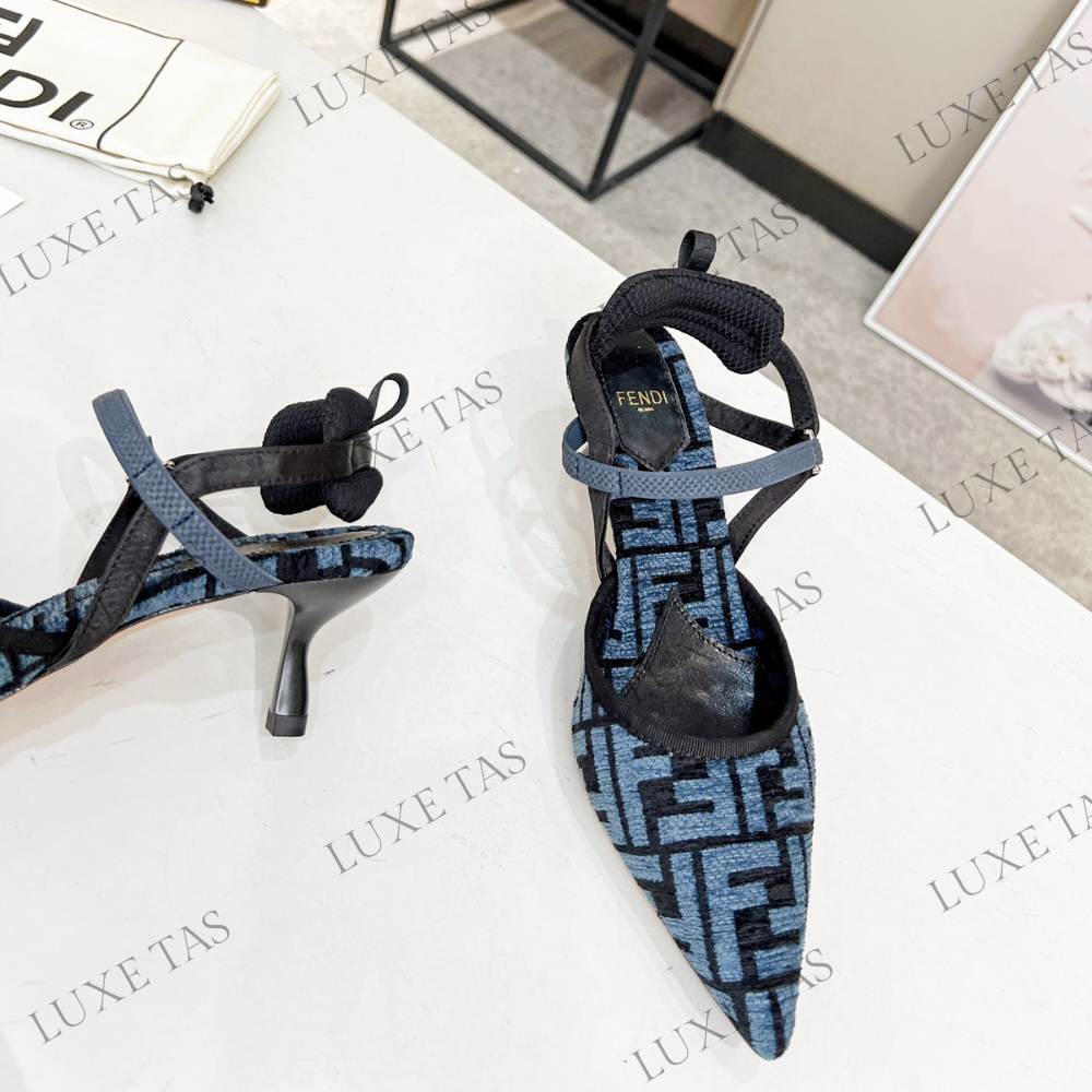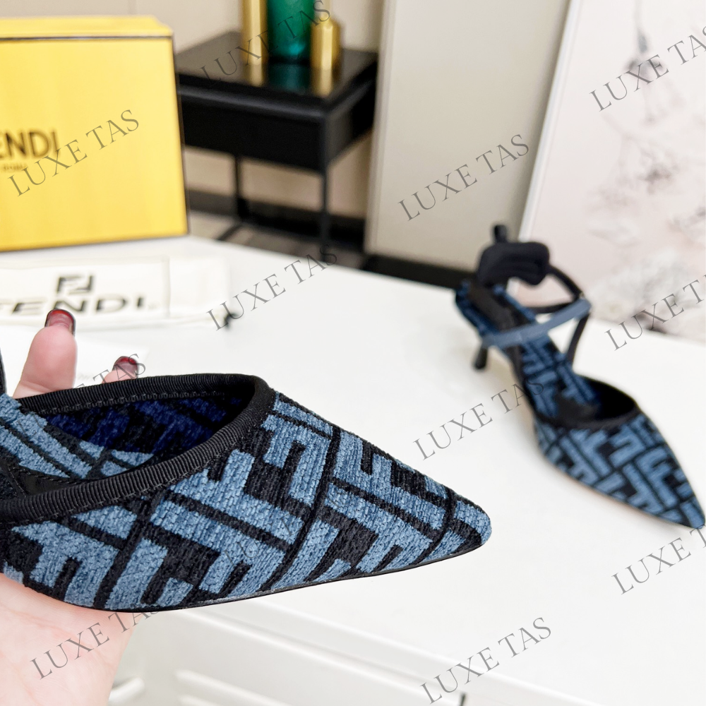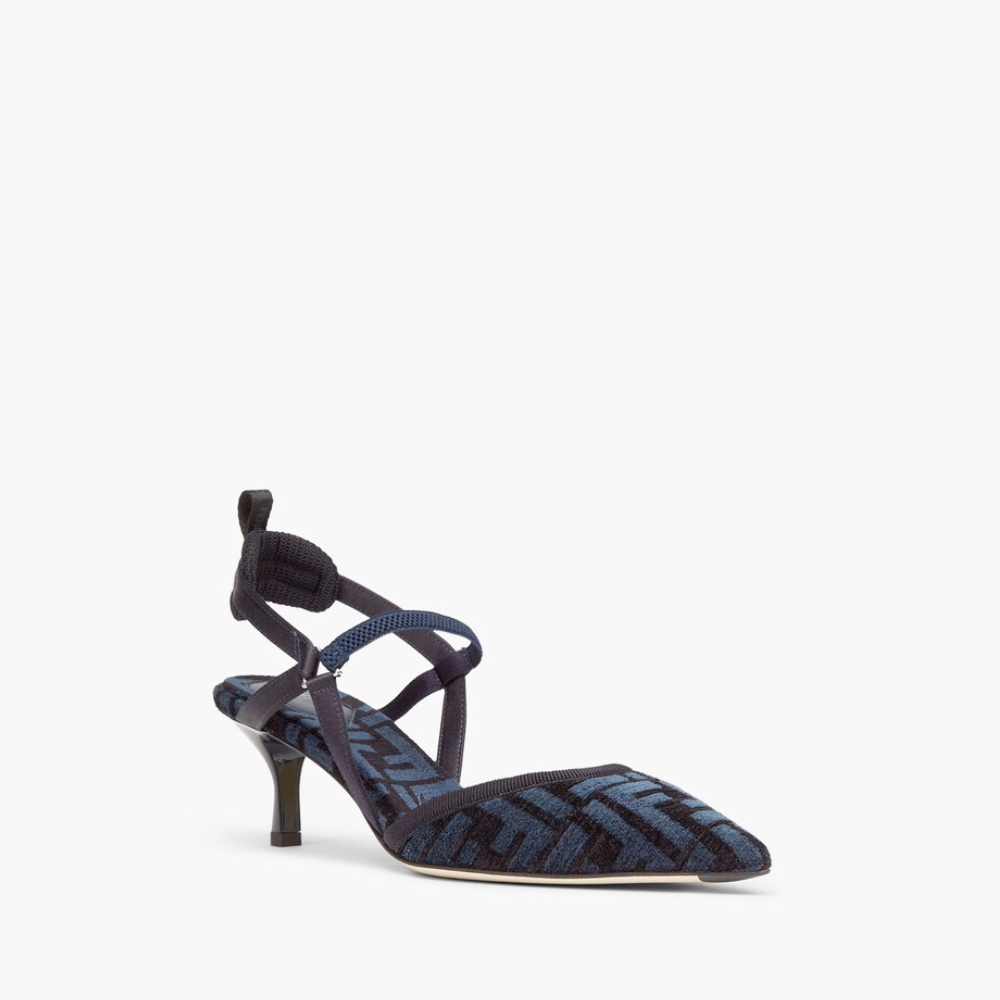 Colibrì Lite Medium-Heel Blue FF Chenille Slingbacks in Blue - Designer Pumps & Platform shoes for Women