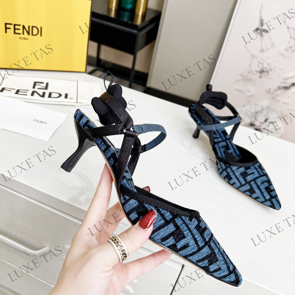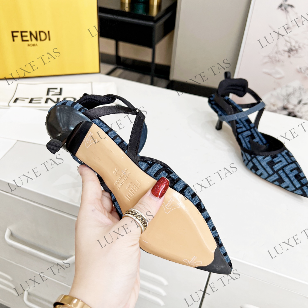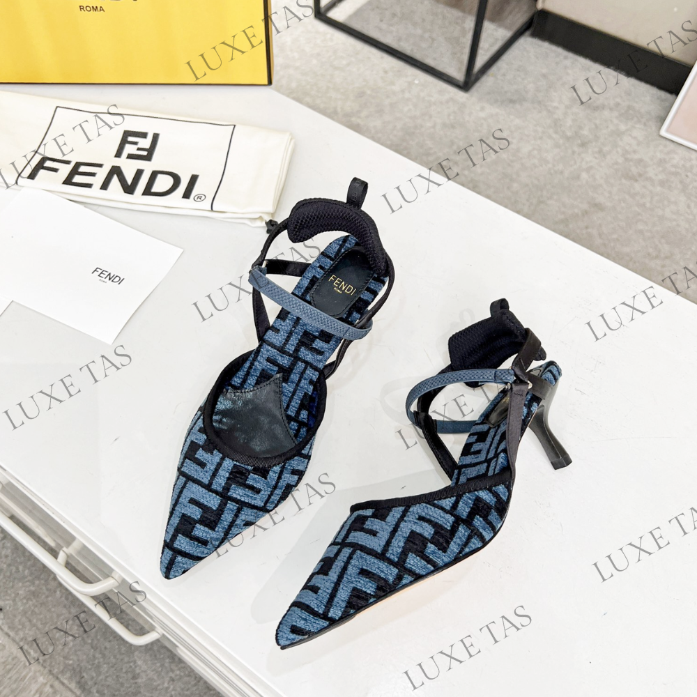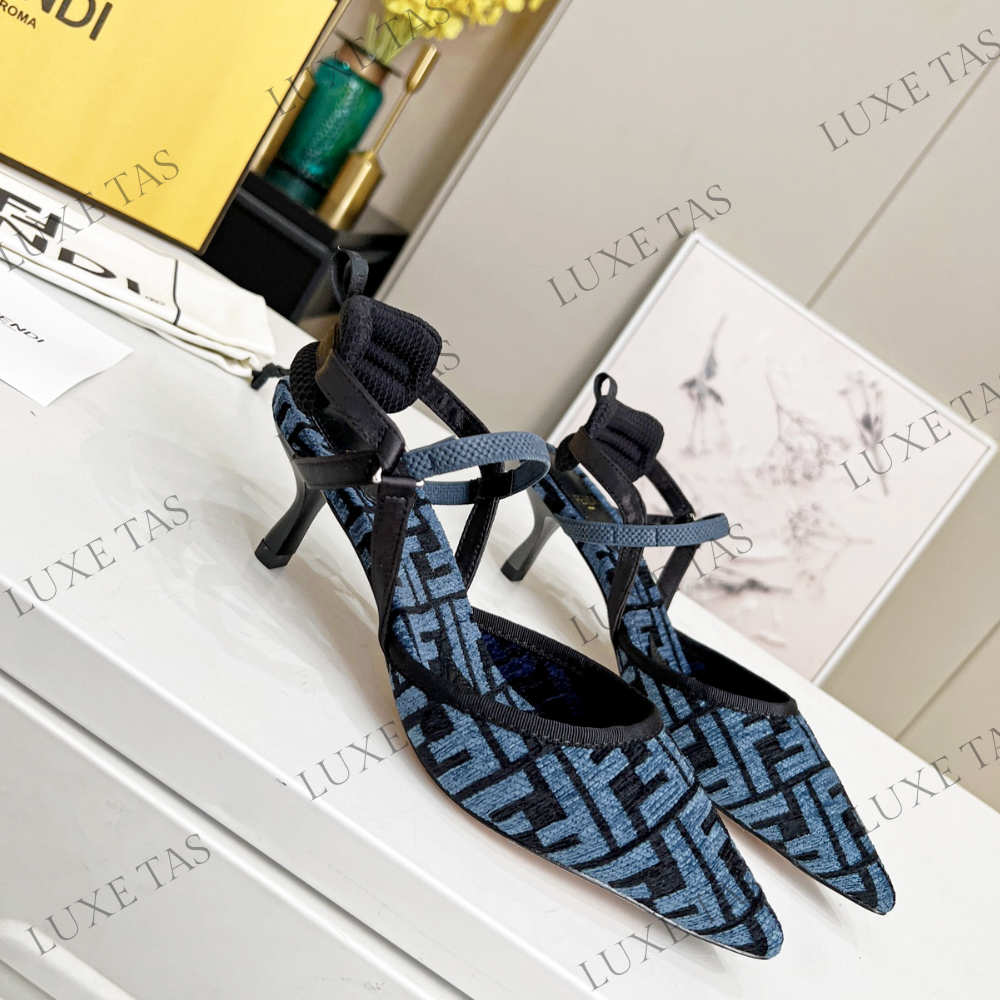 Colibrì Lite Medium-Heel Blue FF Chenille Slingbacks in Blue - Designer Pumps & Platform shoes for Women