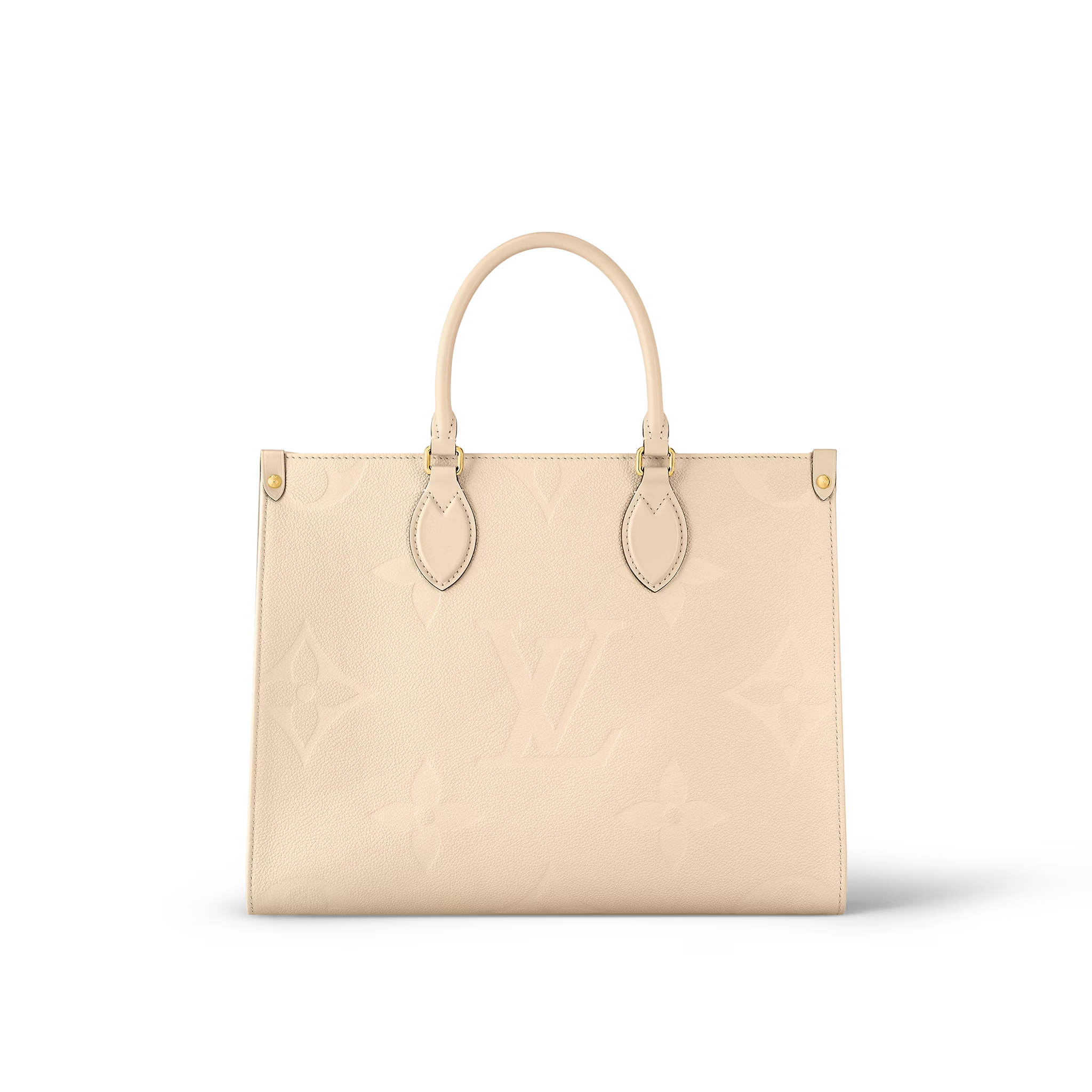 Cream Monogram Empreinte Leather OnTheGo MM - Leather Tote Bag for Women