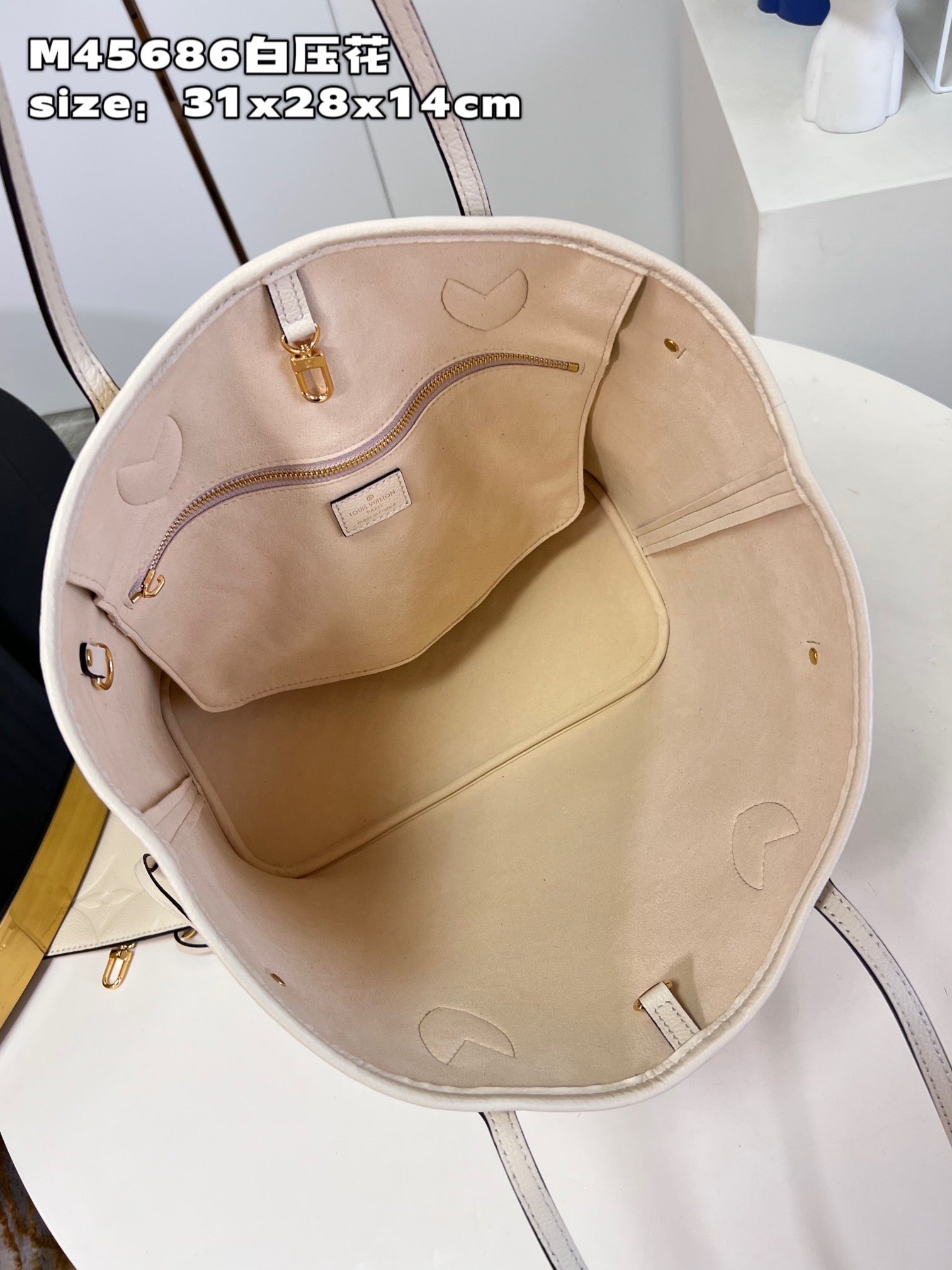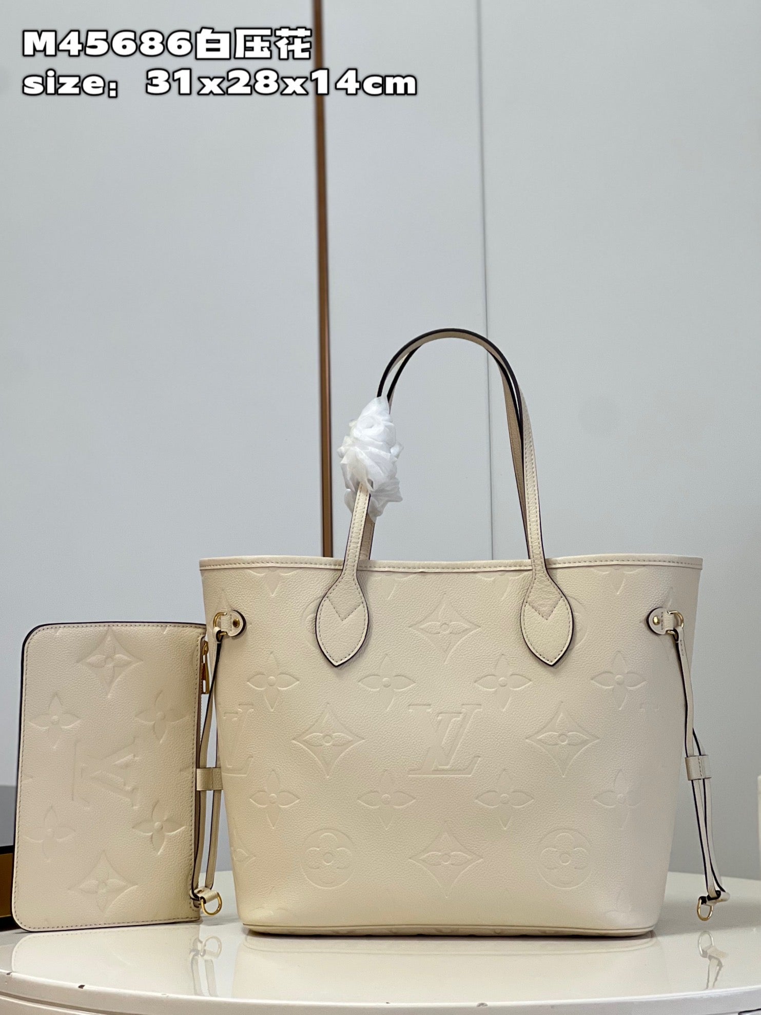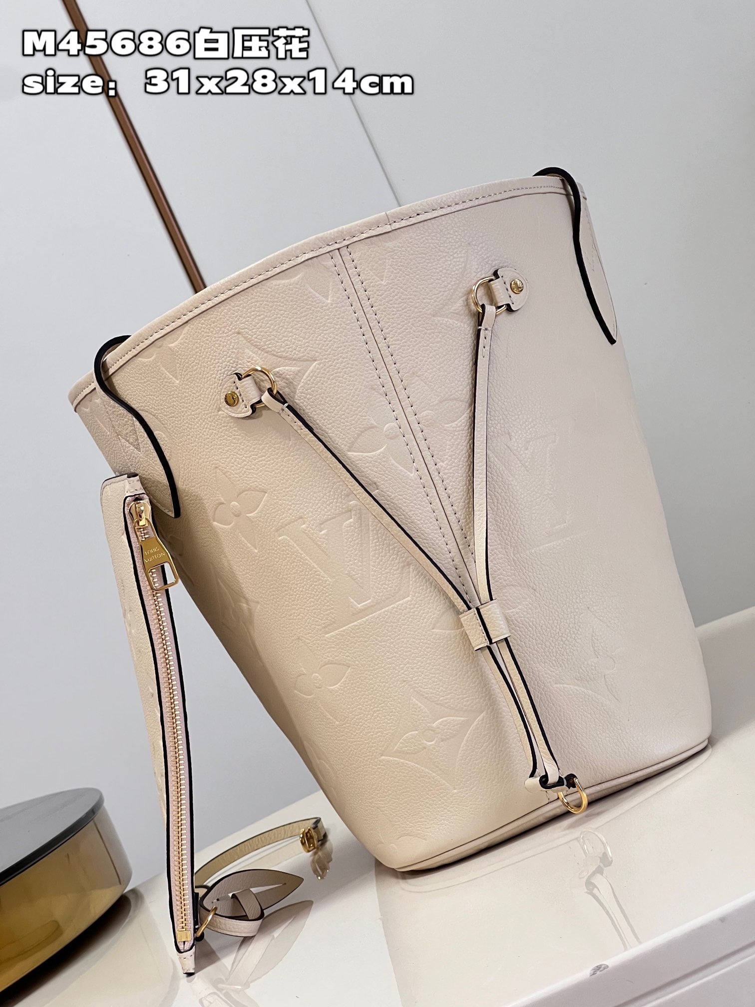 Cream Monogram Empreinte Leather Neverfull MM - Leather Tote Bag for Women