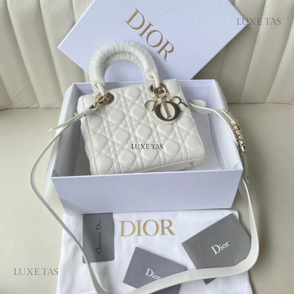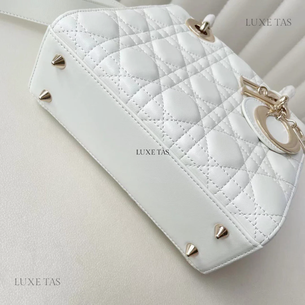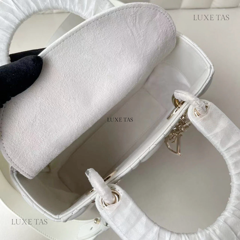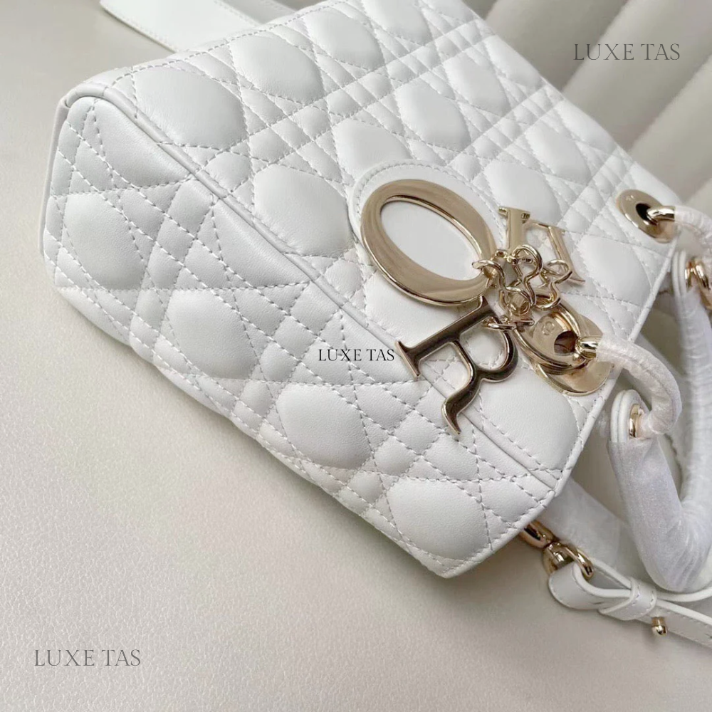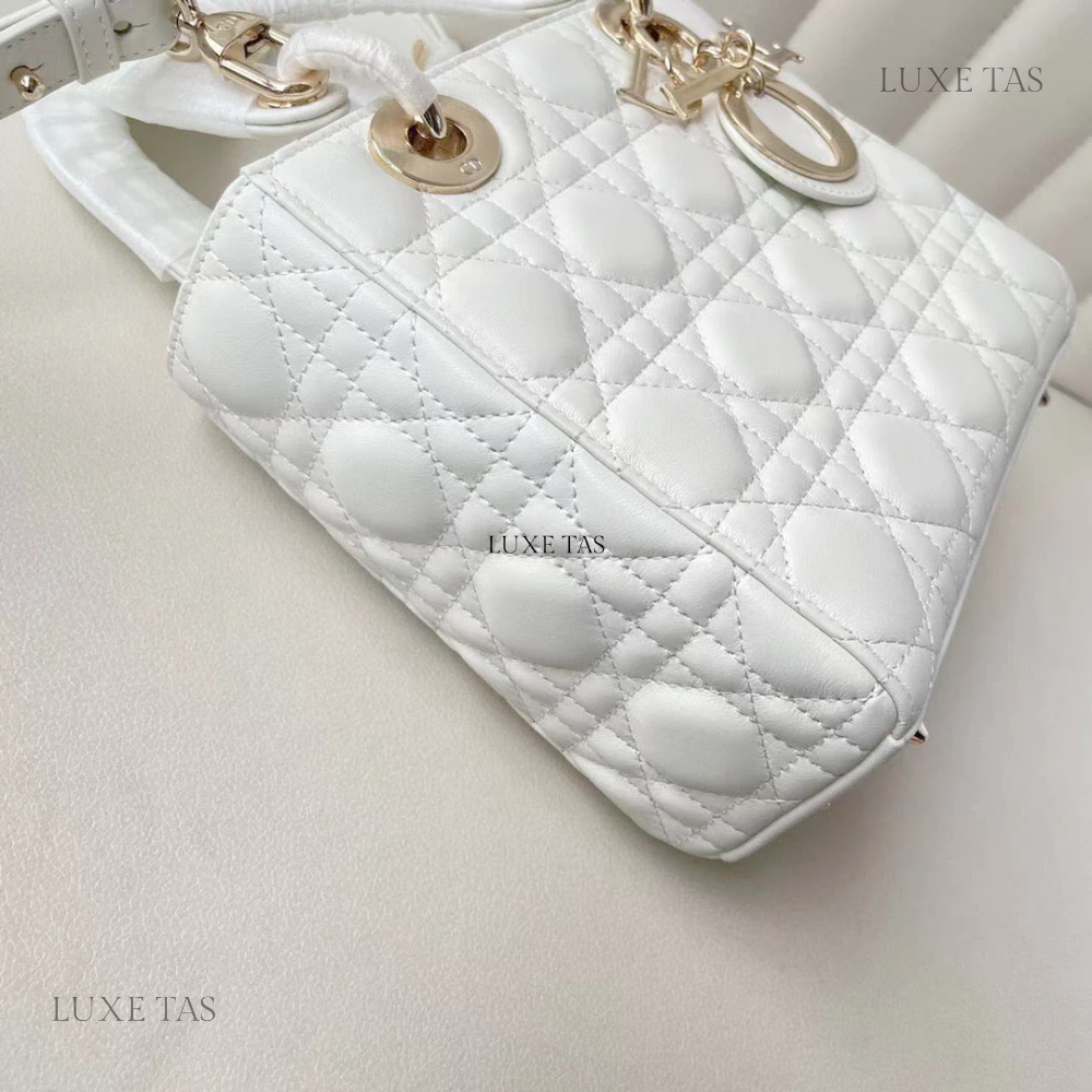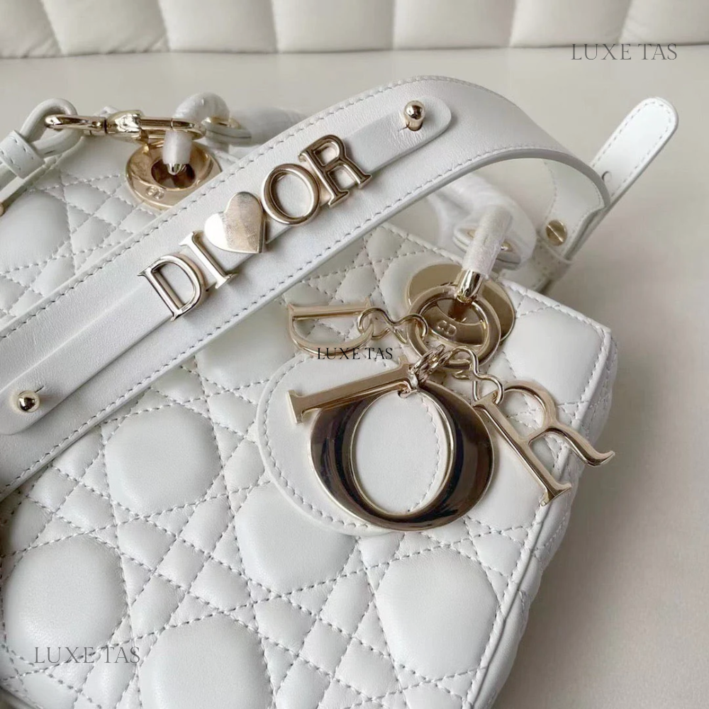 Latte Cannage Lambskin Small Lady D Bag - Leather Handbag for Women