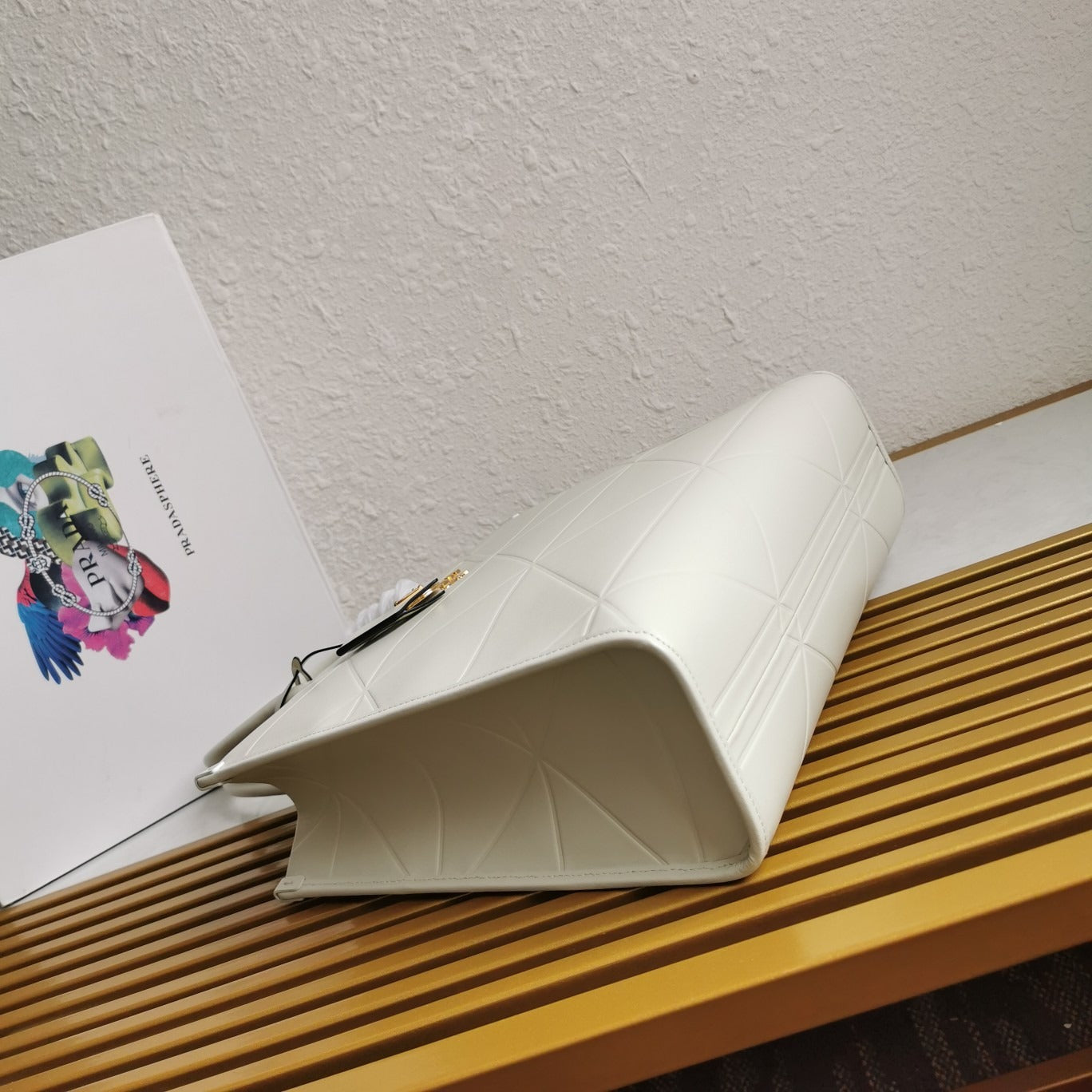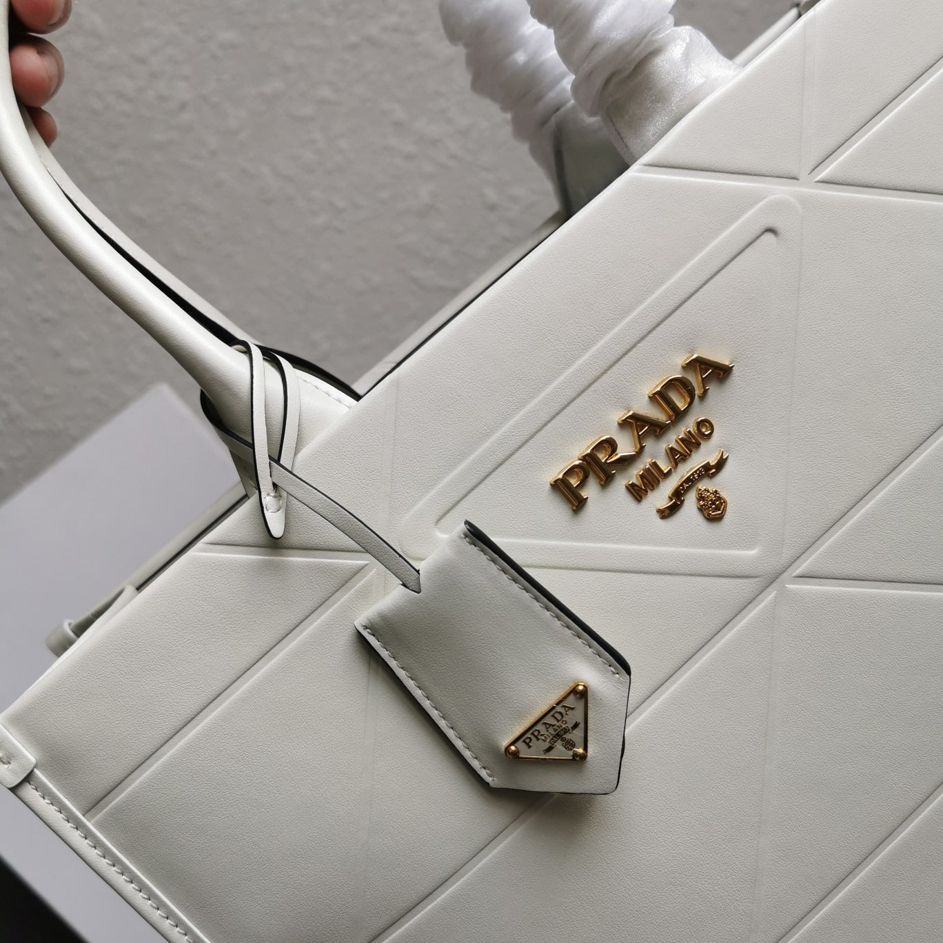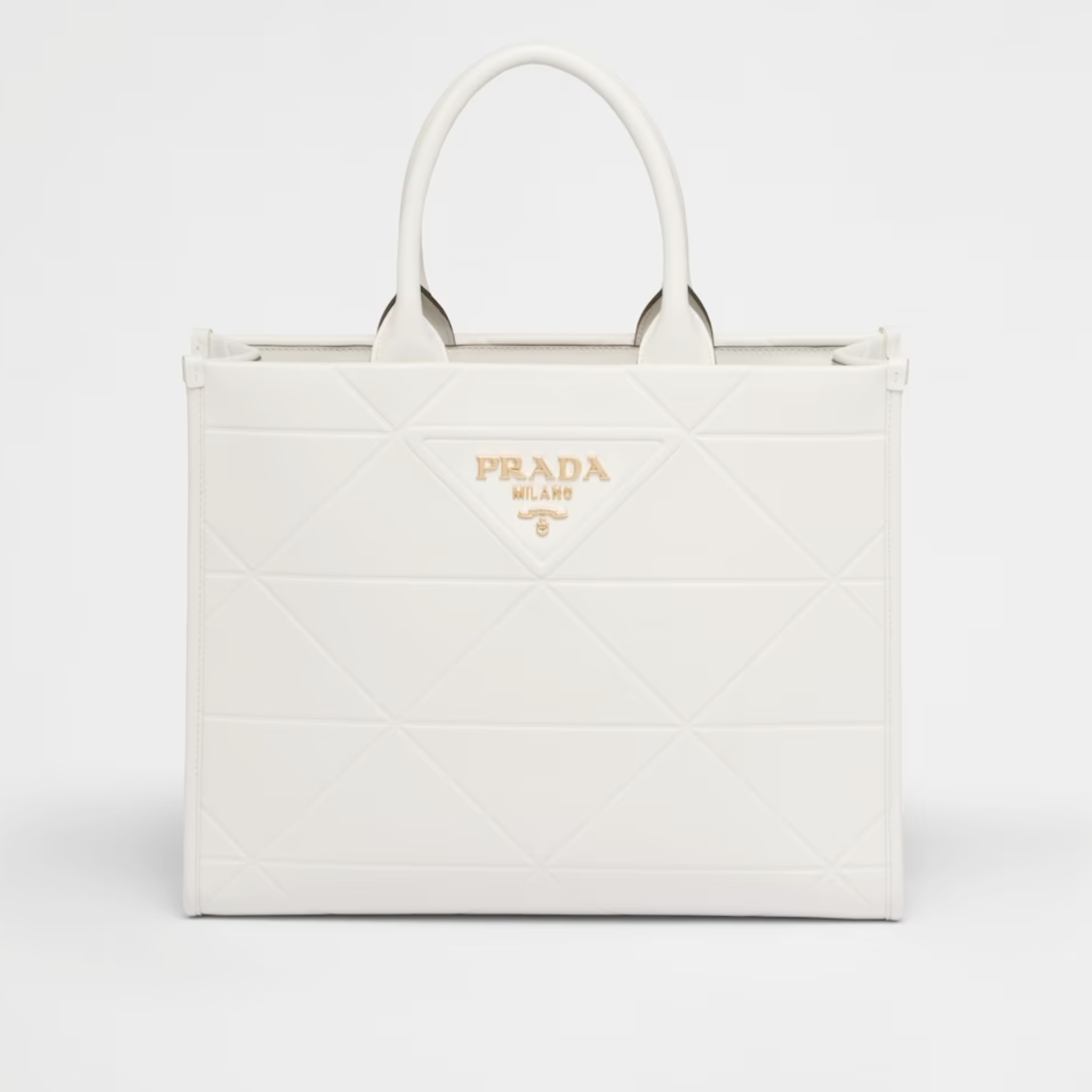 Medium Leather PRD Symbole Bag With Topstitching White - Leather Handbag for Women