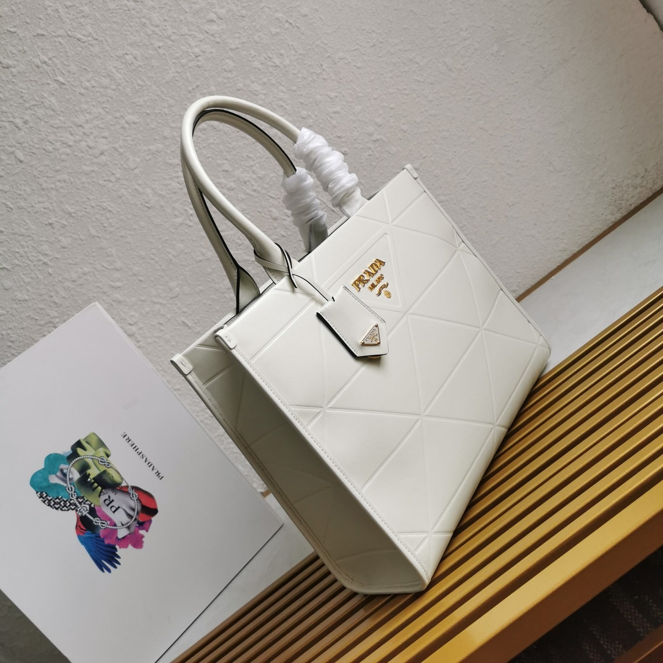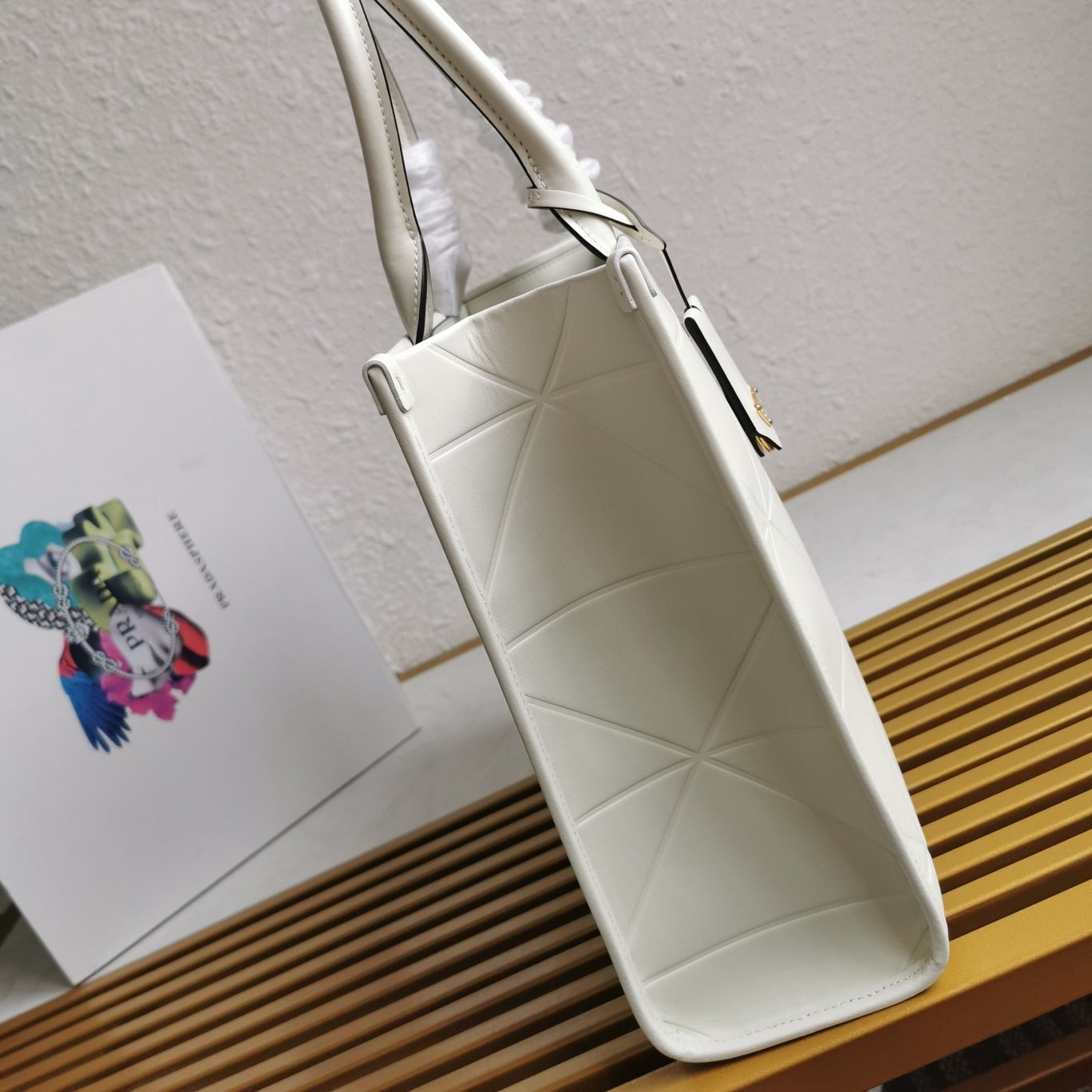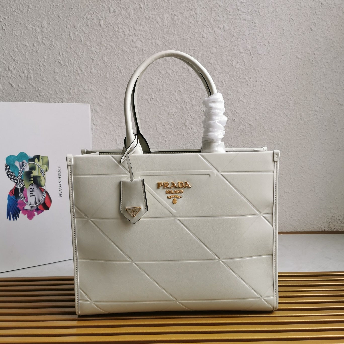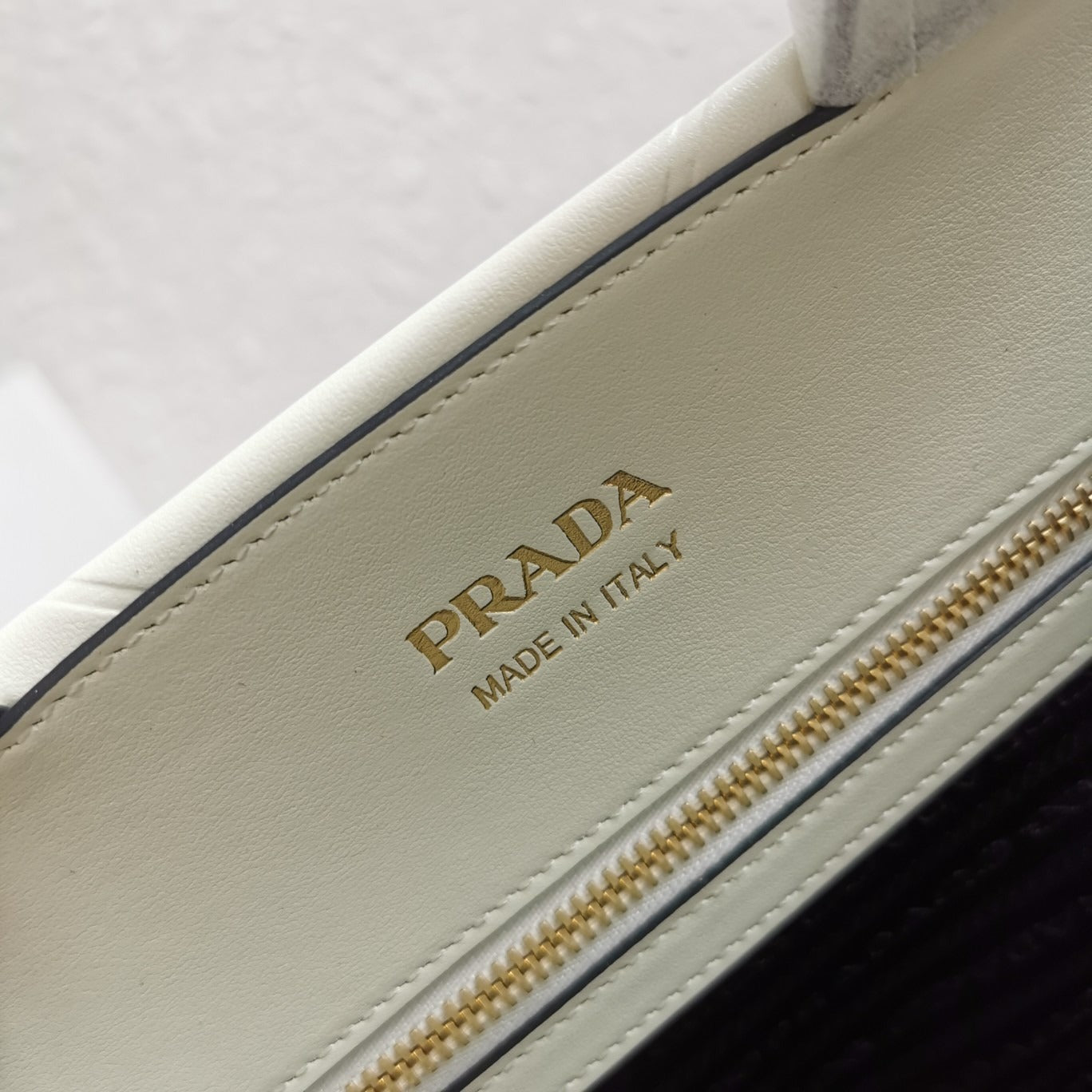 Medium Leather PRD Symbole Bag With Topstitching White - Leather Handbag for Women