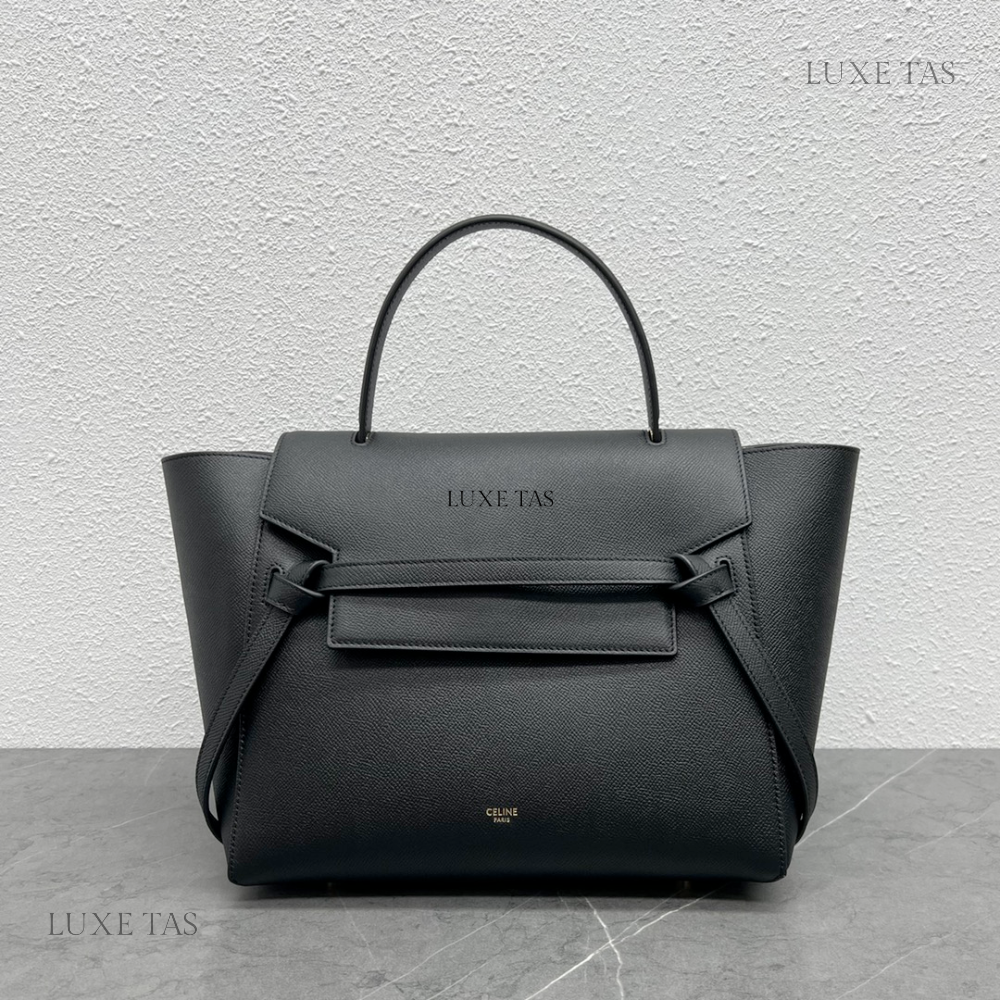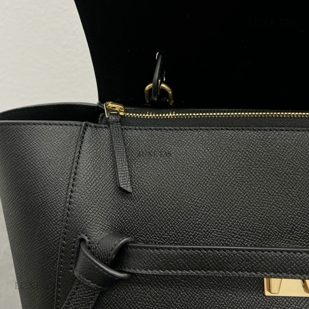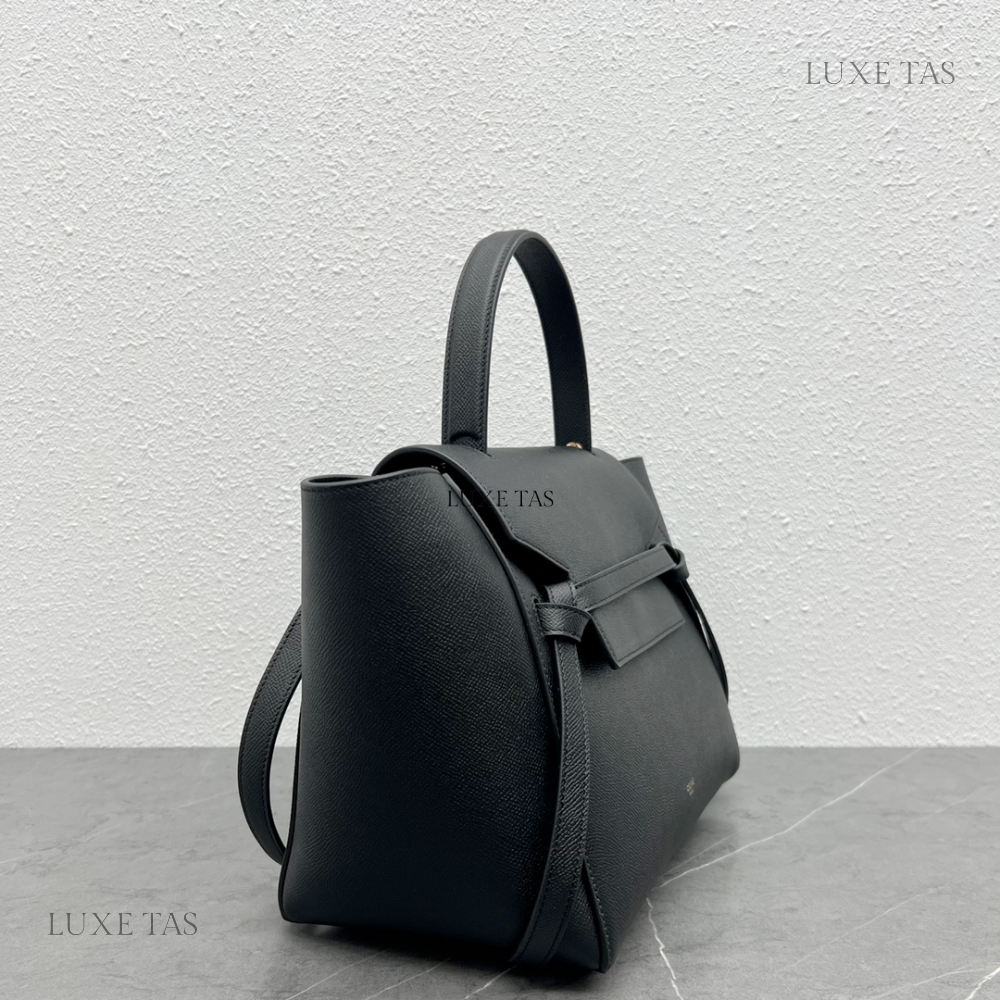 Mini Belt Bag In Grained Calfskin Black - Leather Handbag for Women