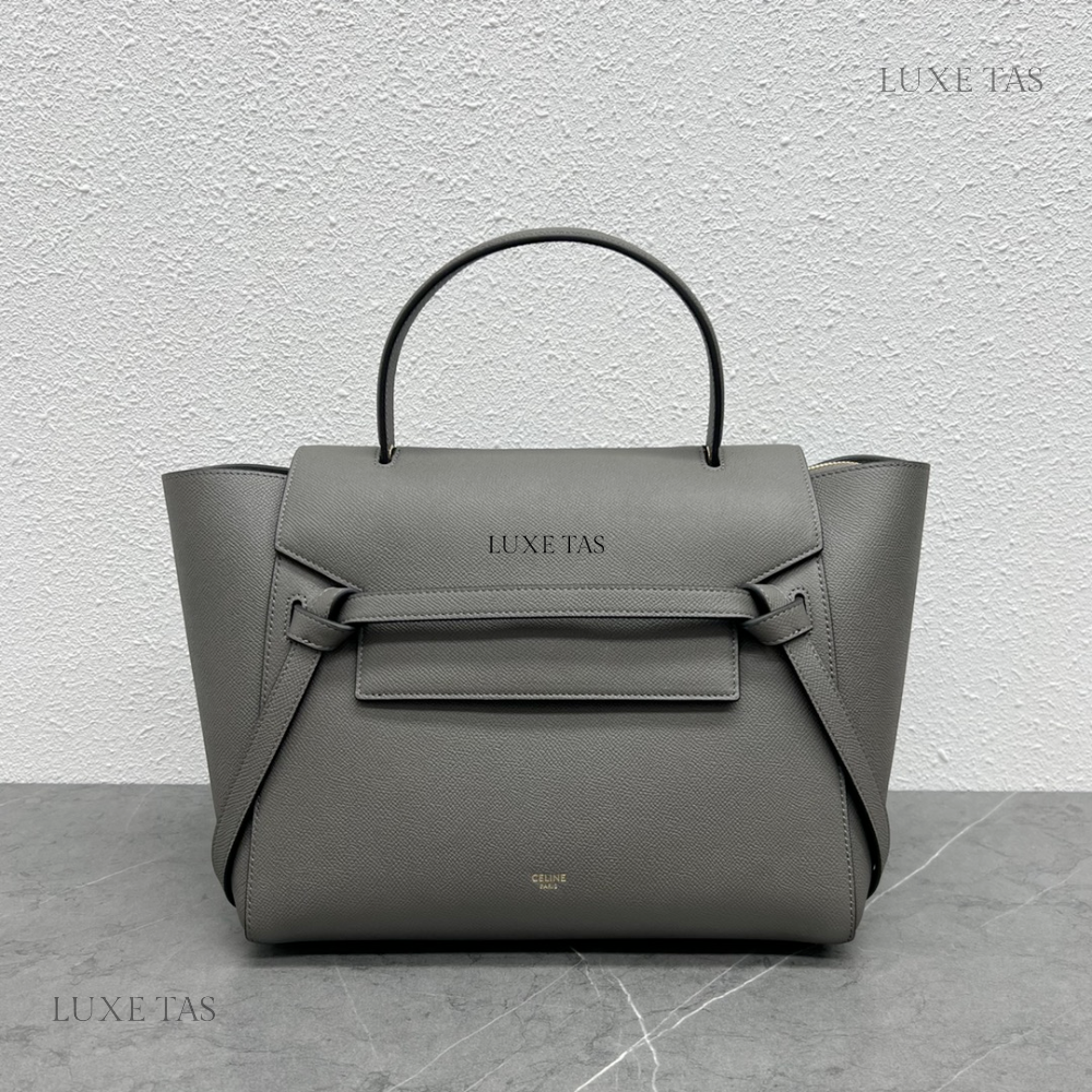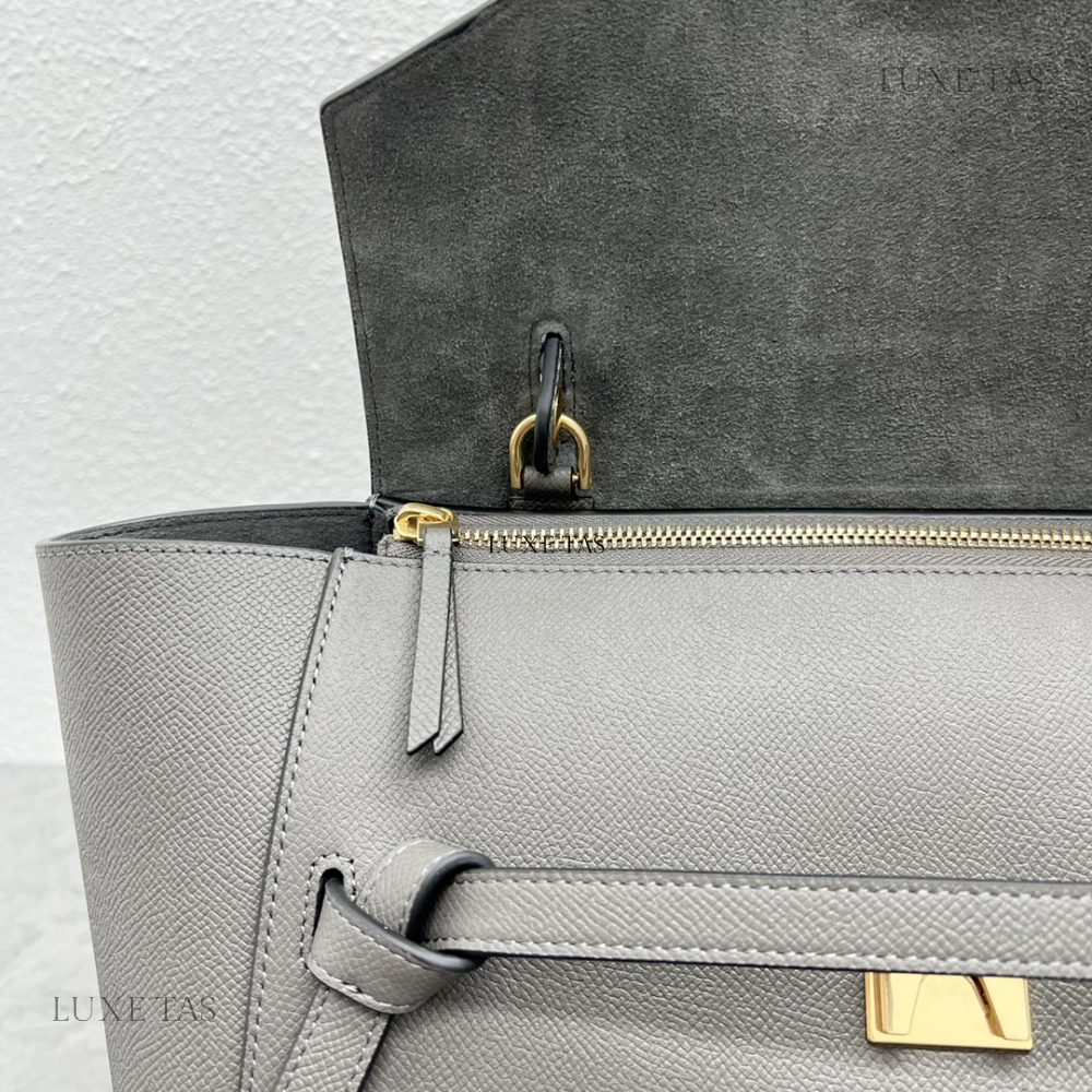 Mini Belt Bag In Grained Calfskin Grey - Leather Handbag for Women