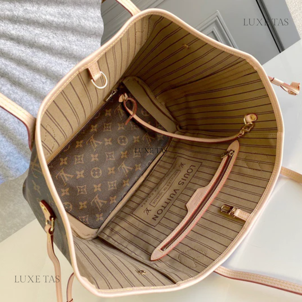Monogram Beige Neverfull - Leather Tote Bag for Women