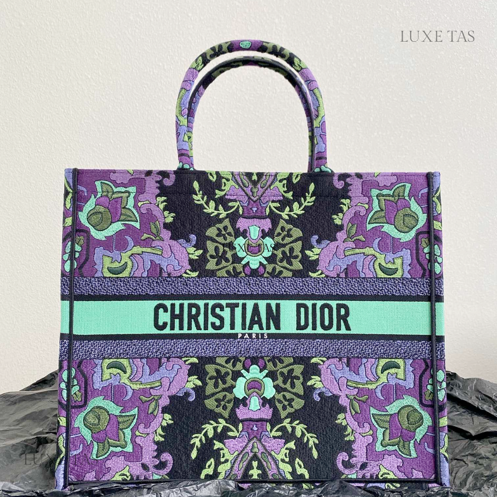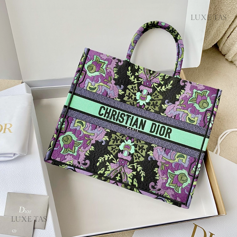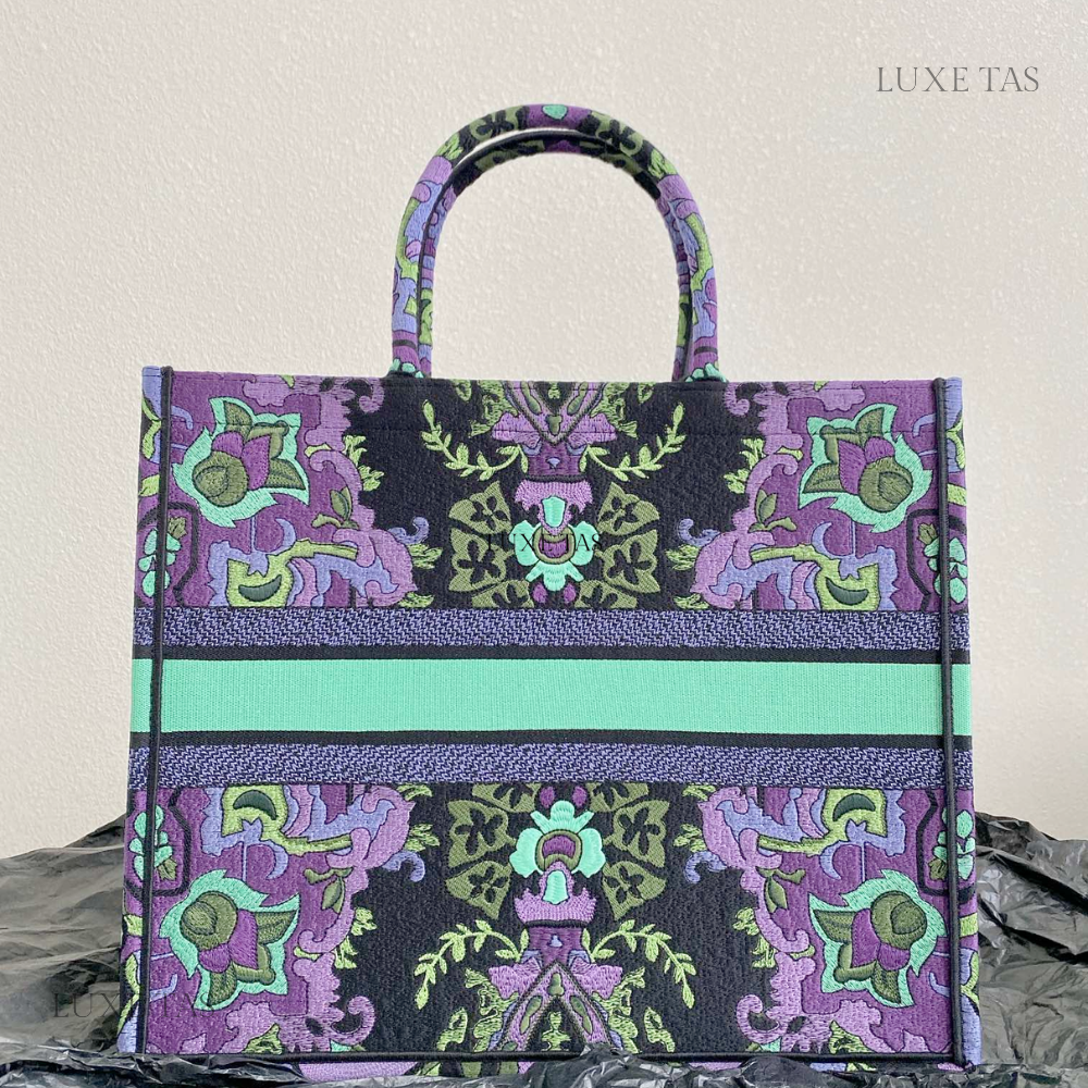 Multicolor Purple Embroidery Large D Book Tote - Tote Bag for Women
