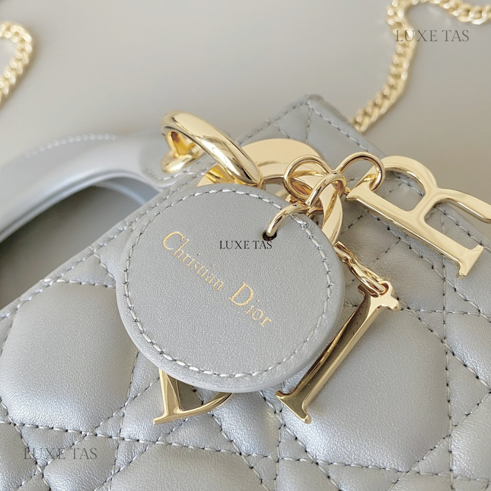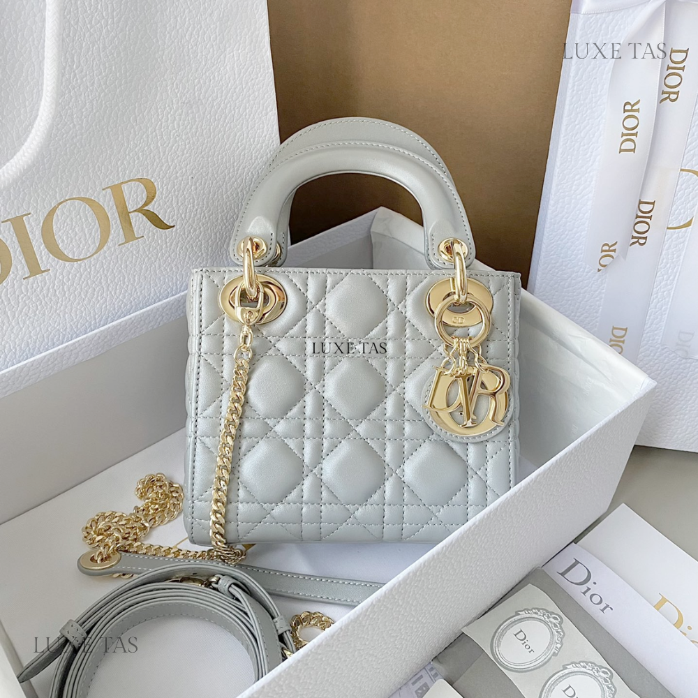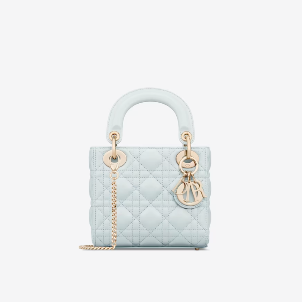 Placid Blue Cannage Lambskin Mini Lady D Bag - Leather Handbag for Women