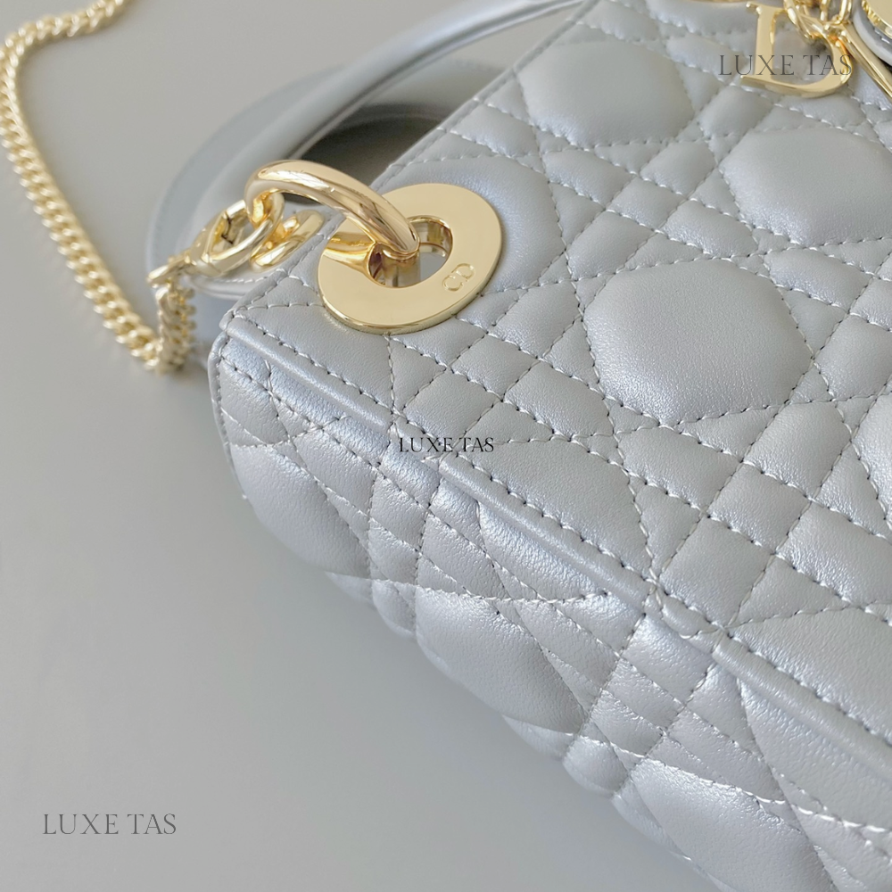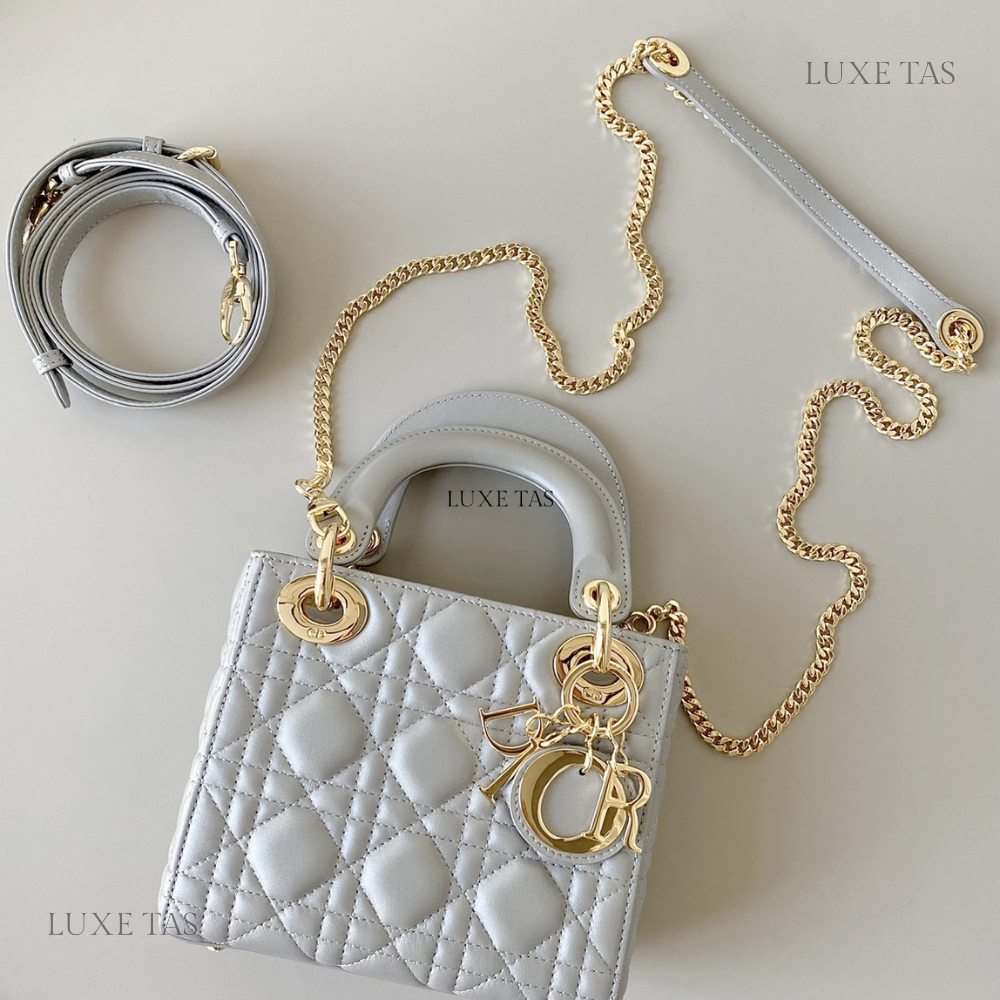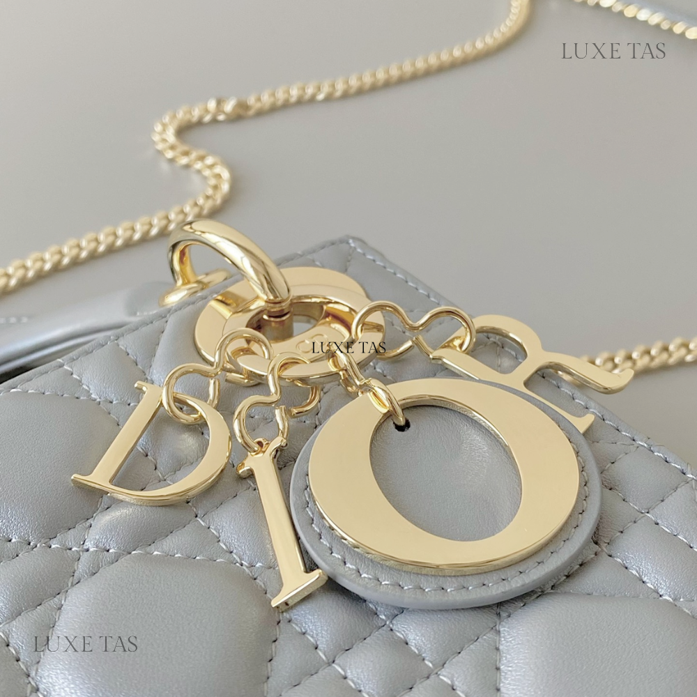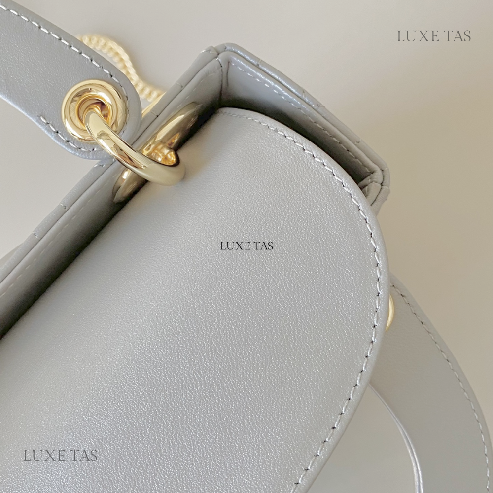 Placid Blue Cannage Lambskin Mini Lady D Bag - Leather Handbag for Women
