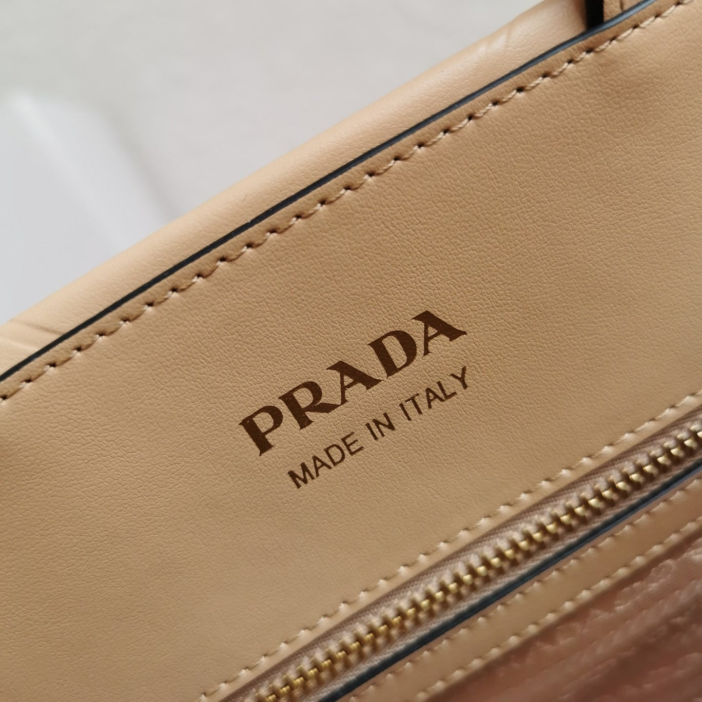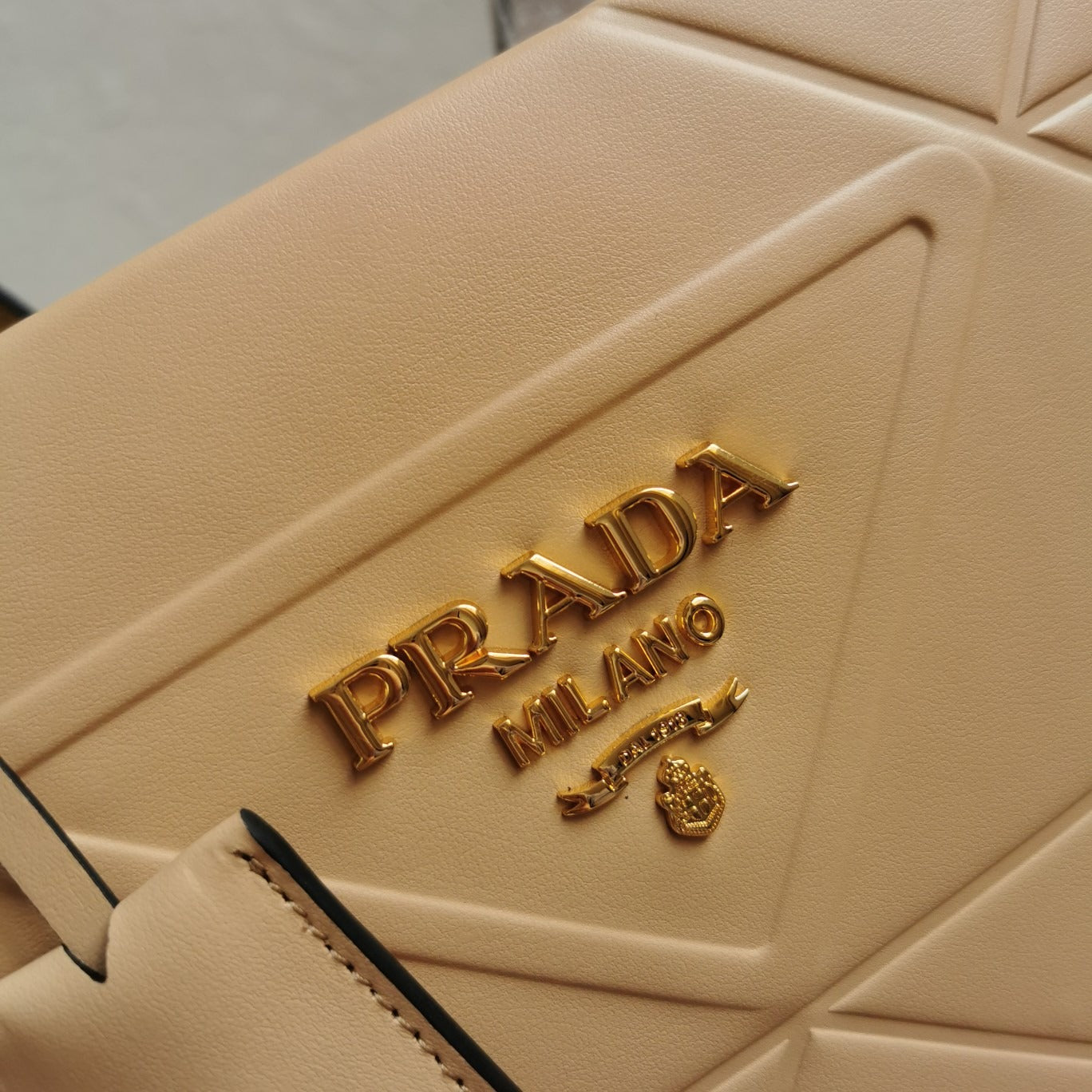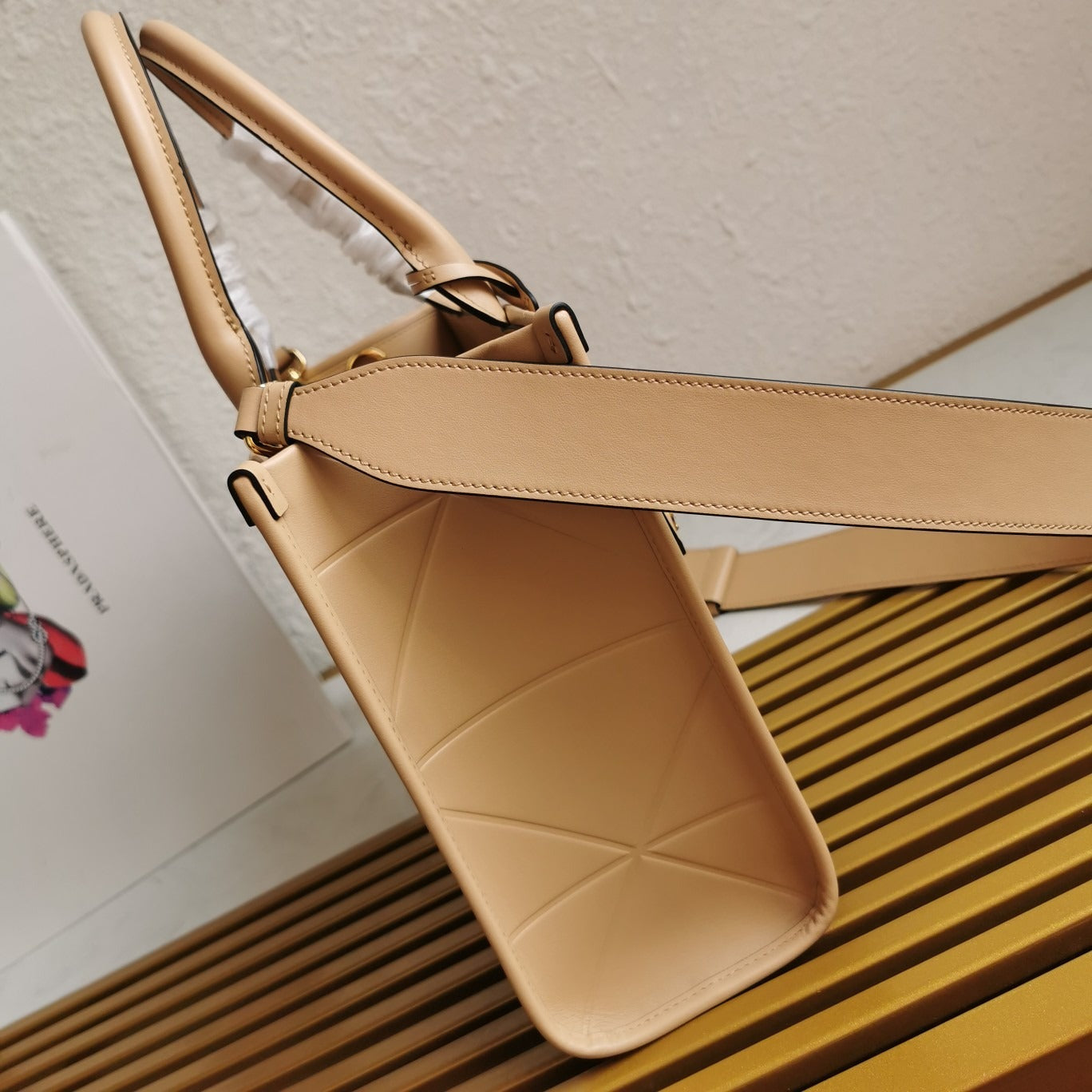 Small Leather PRD Symbole Bag With Topstitching Sand Beige - Leather Handbag for Women