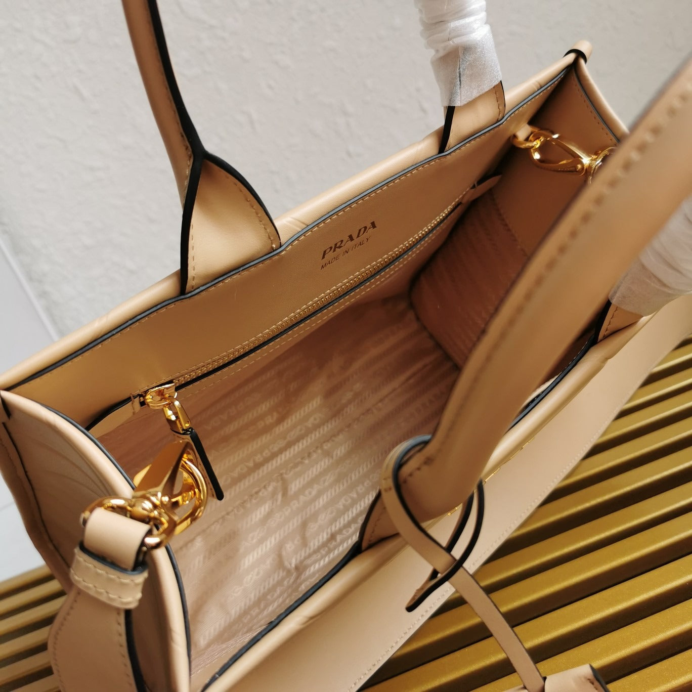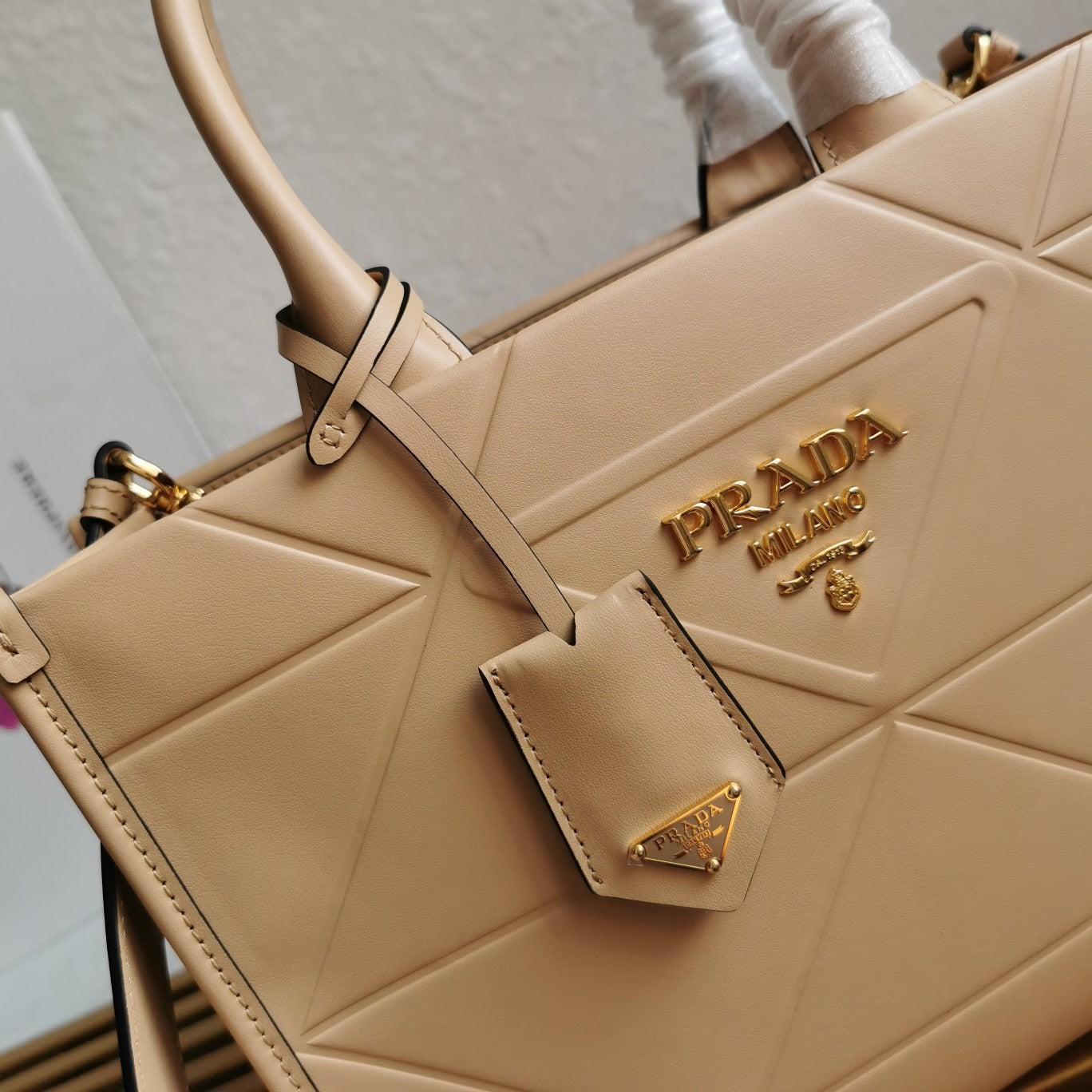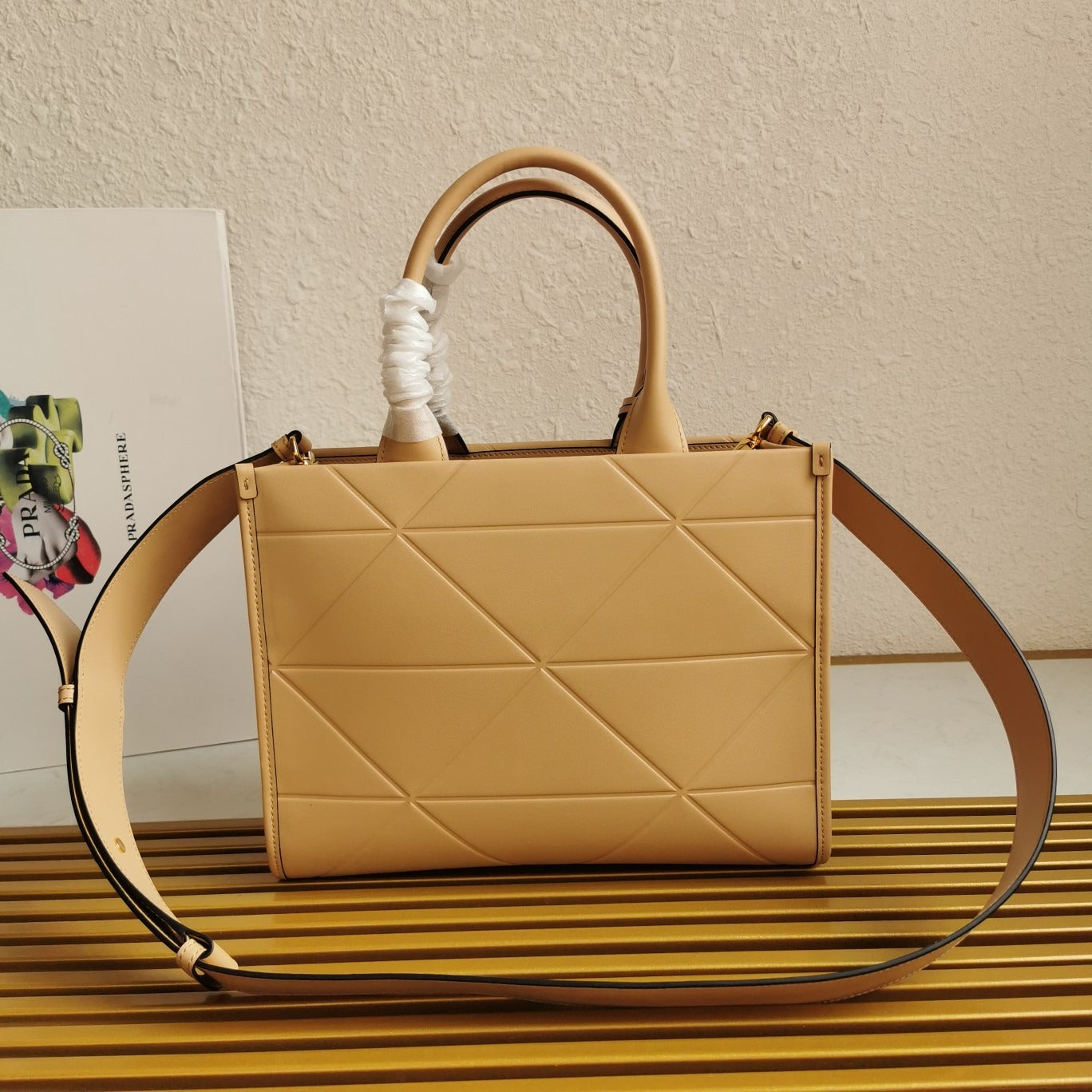 Small Leather PRD Symbole Bag With Topstitching Sand Beige - Leather Handbag for Women