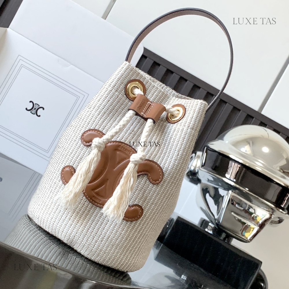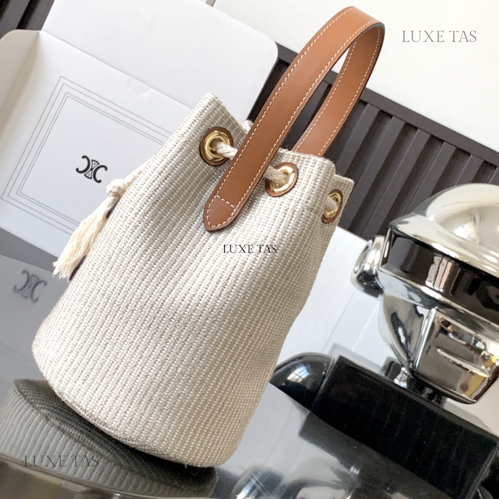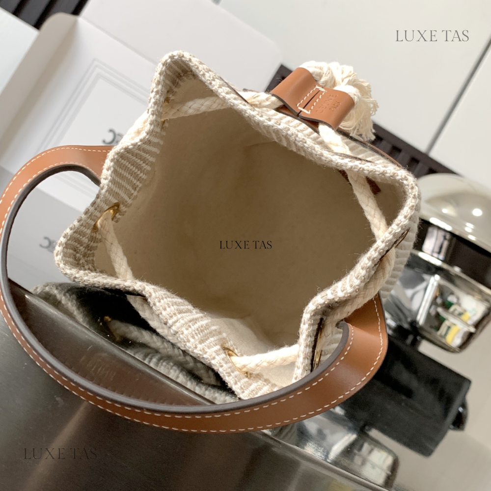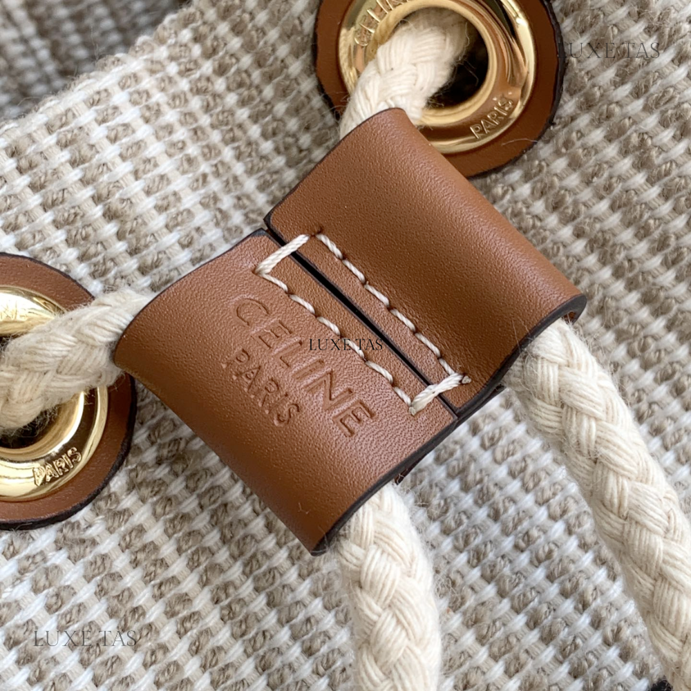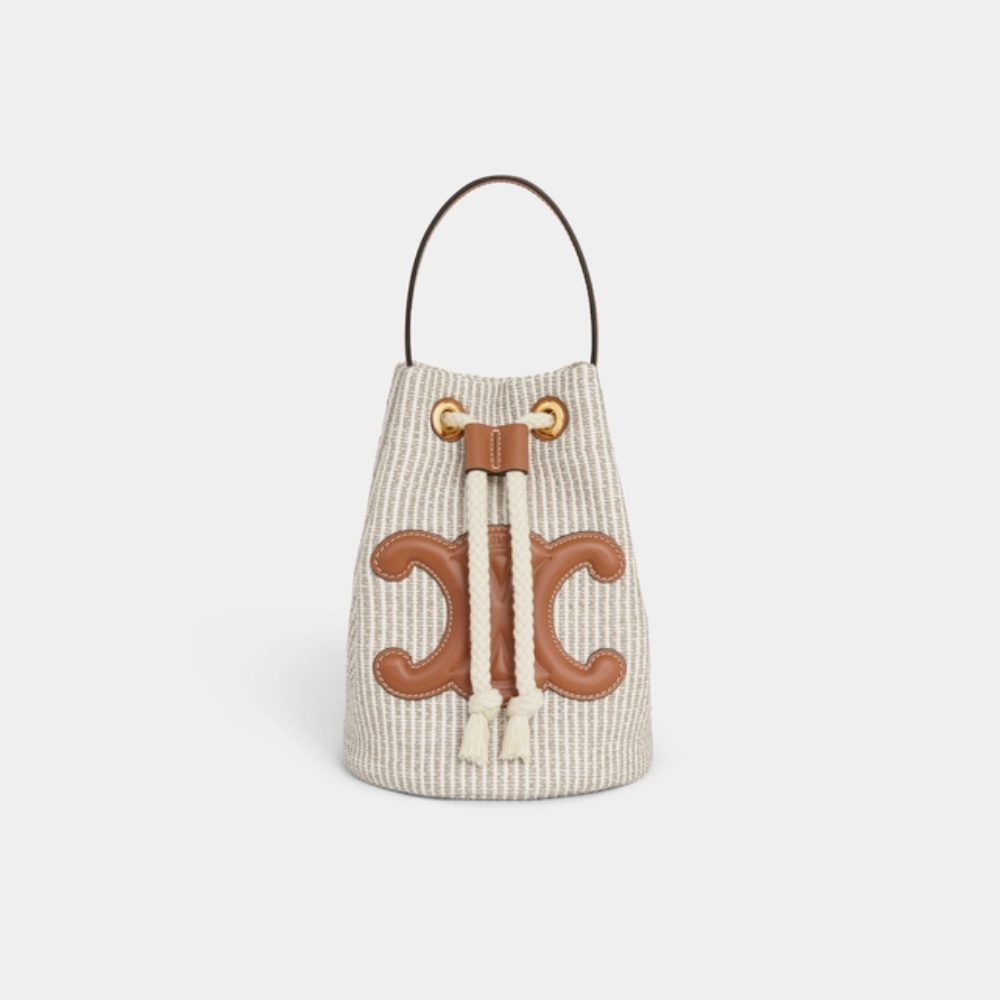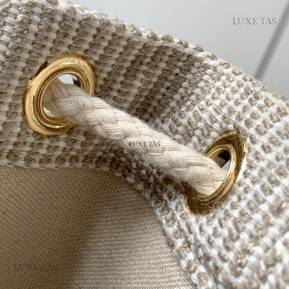 Teen Drawstring In Striped Textile And Calfskin Beige - Bucket Bag for Women