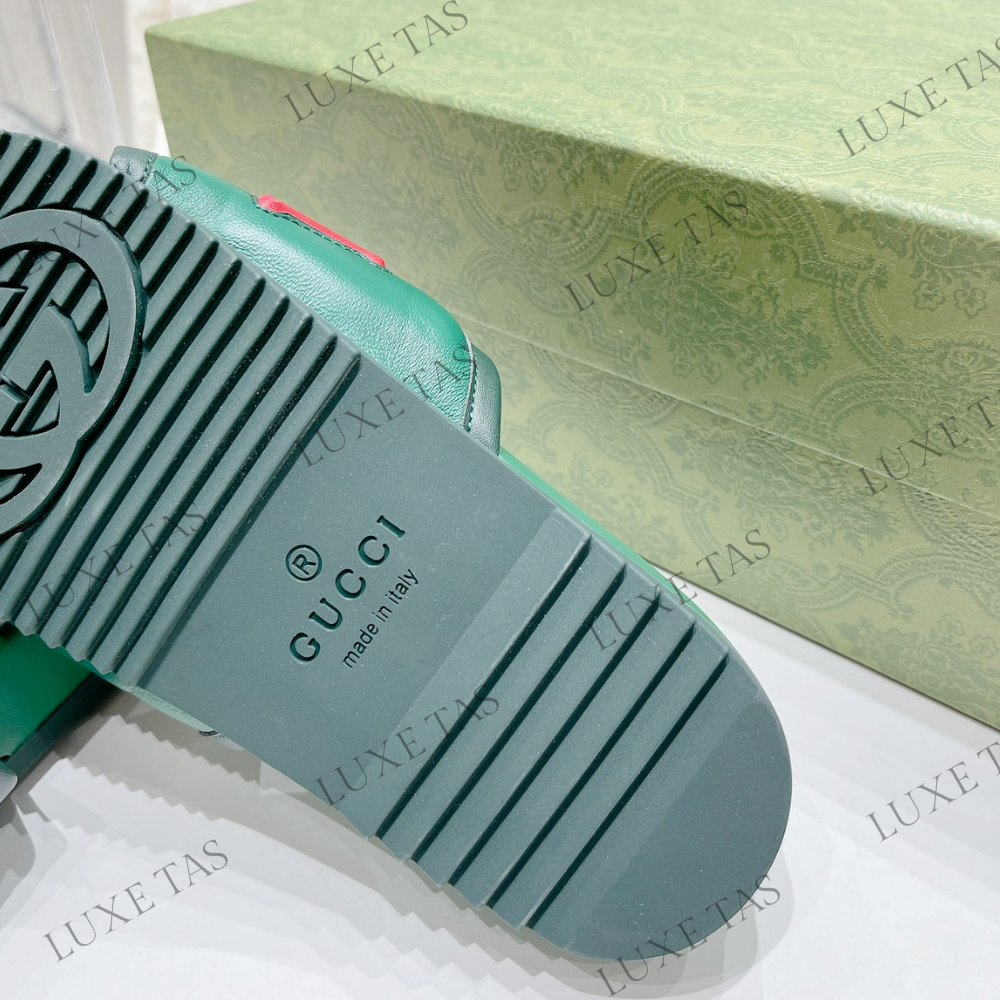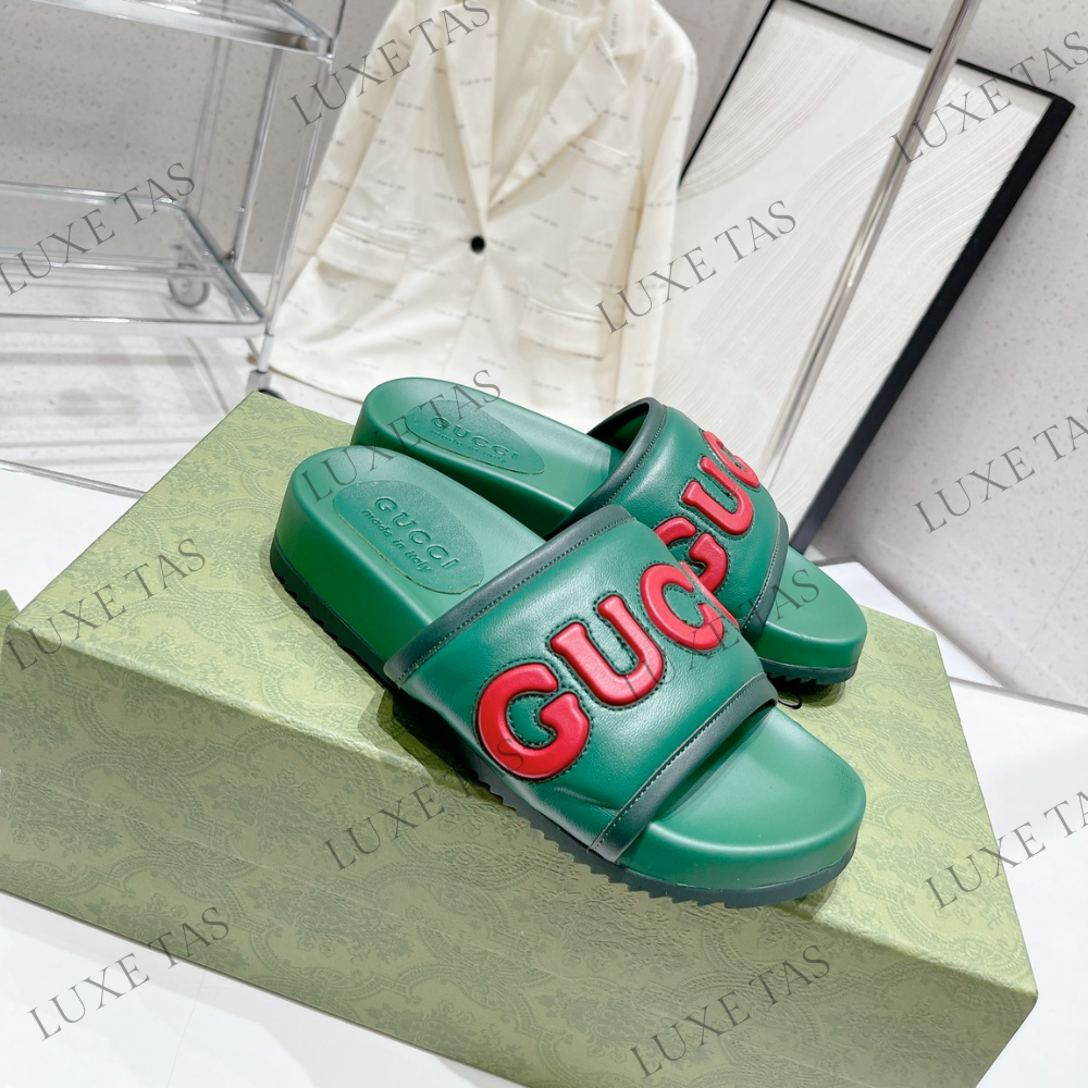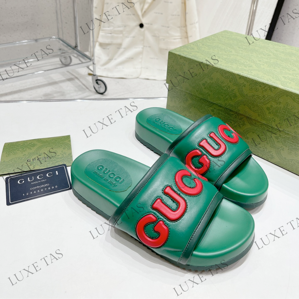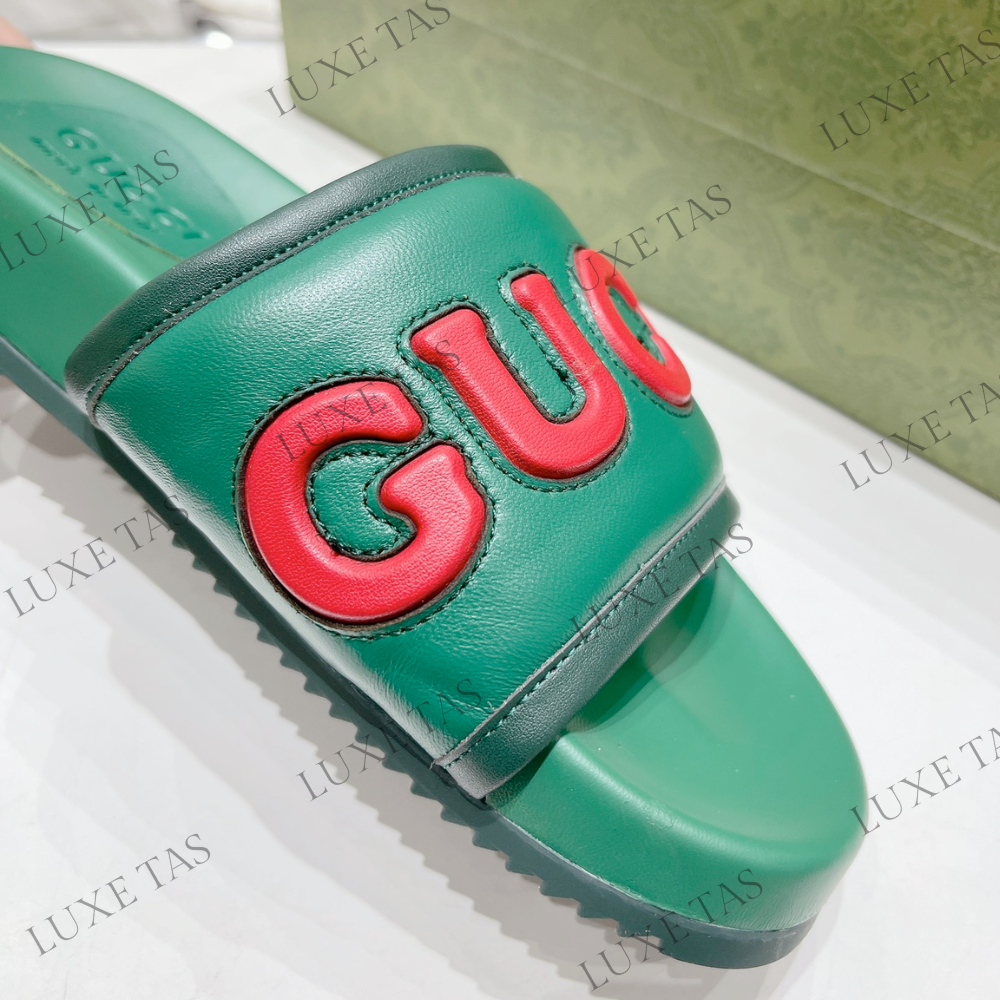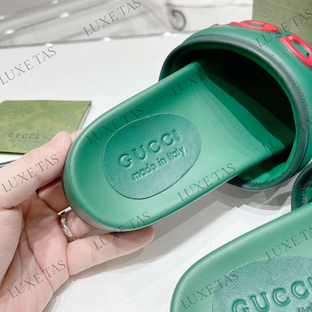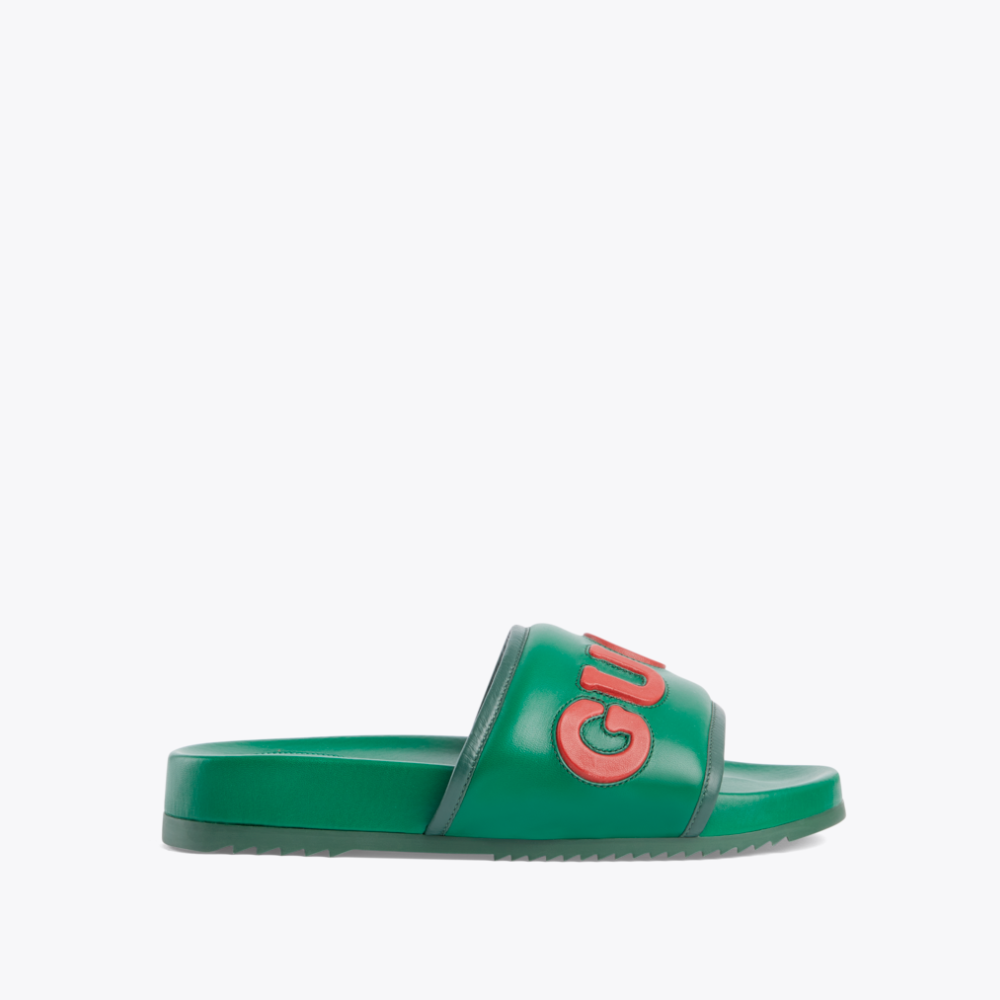 Green Leather Slide Sandal - Designer Slides & Sandals for Men