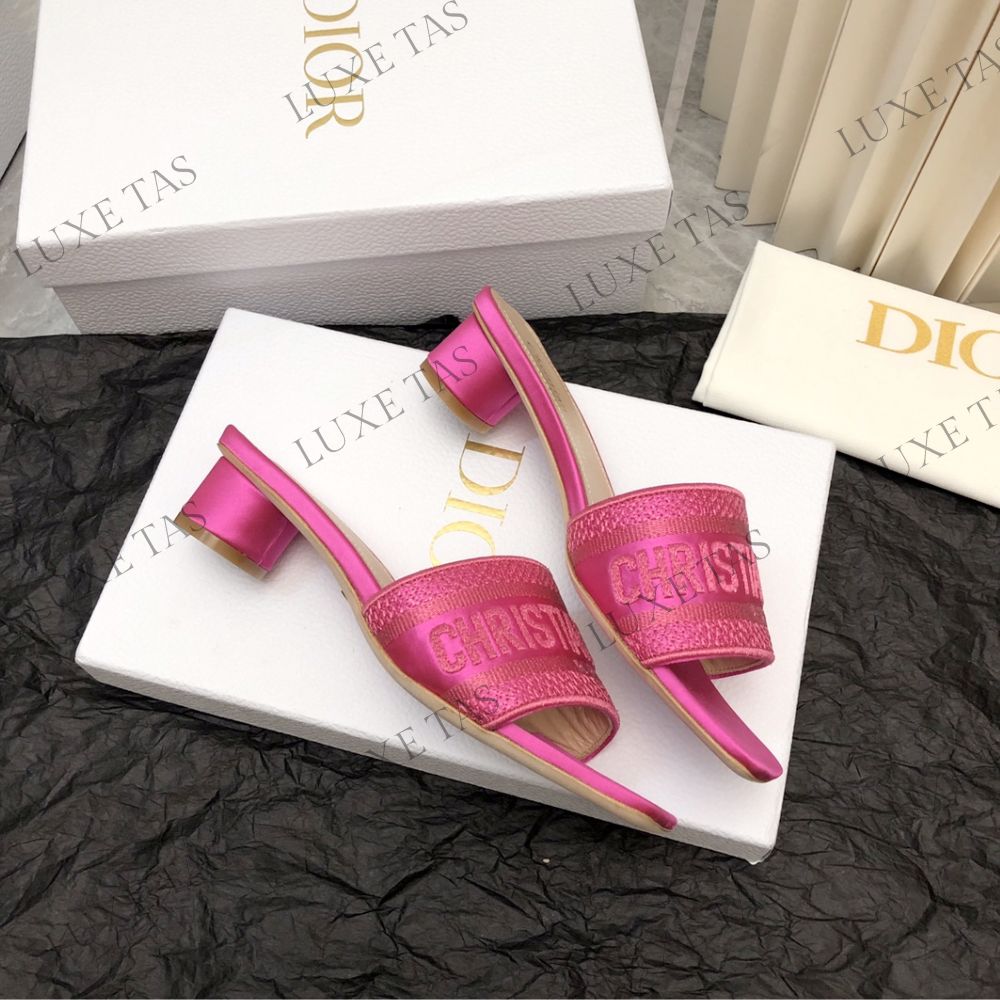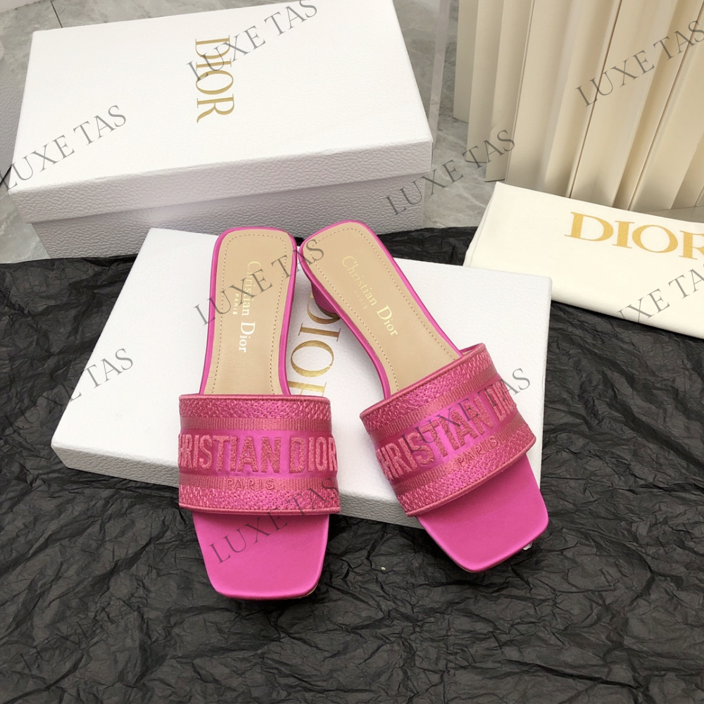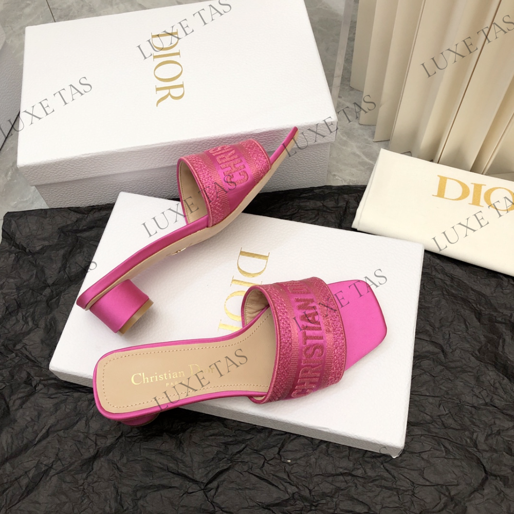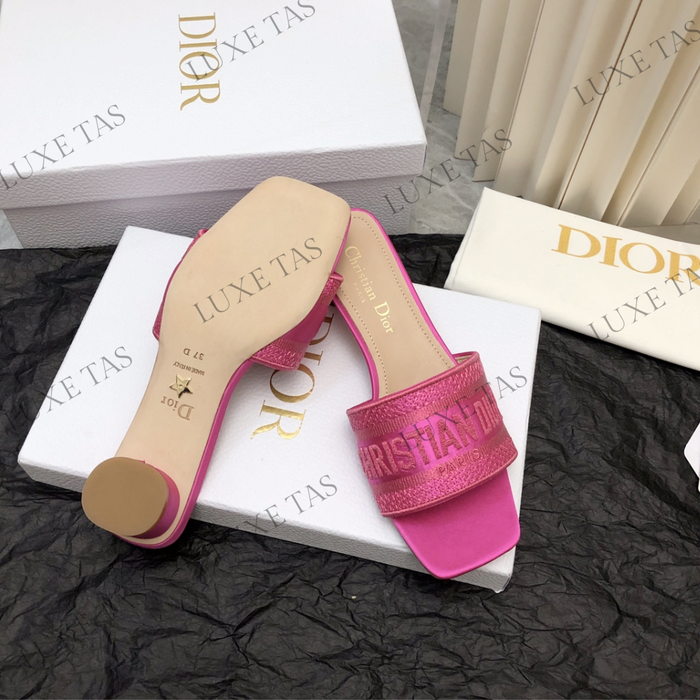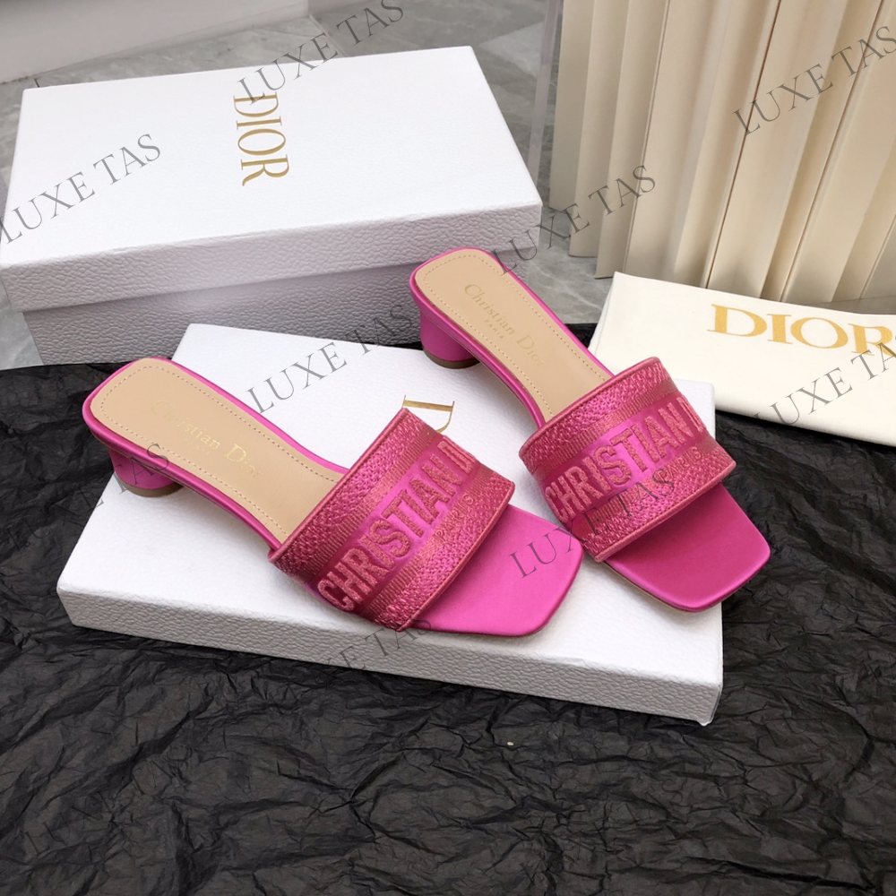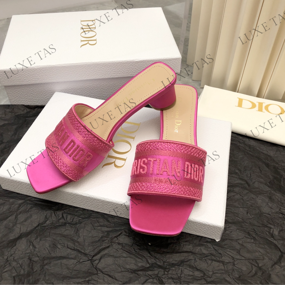 Rani Pink Embroidered Dway Heeled Slide - Designer Slides & Sandals for Women