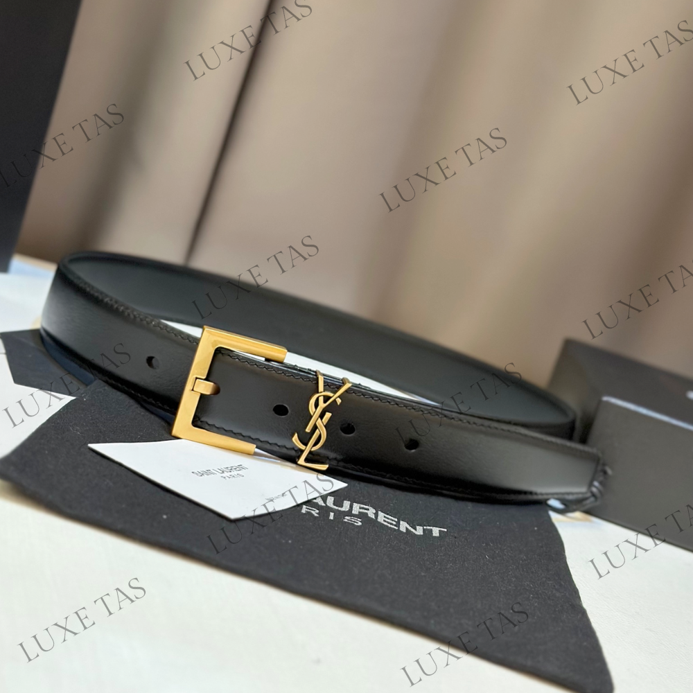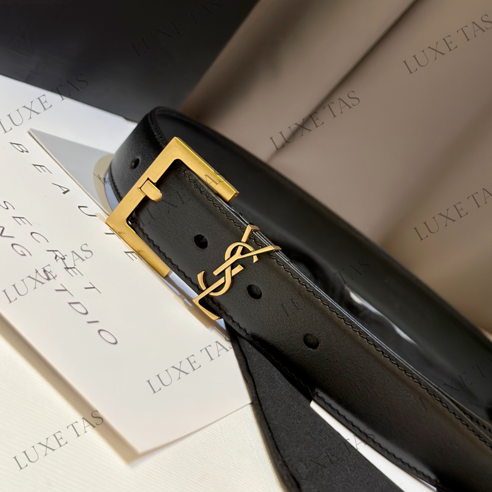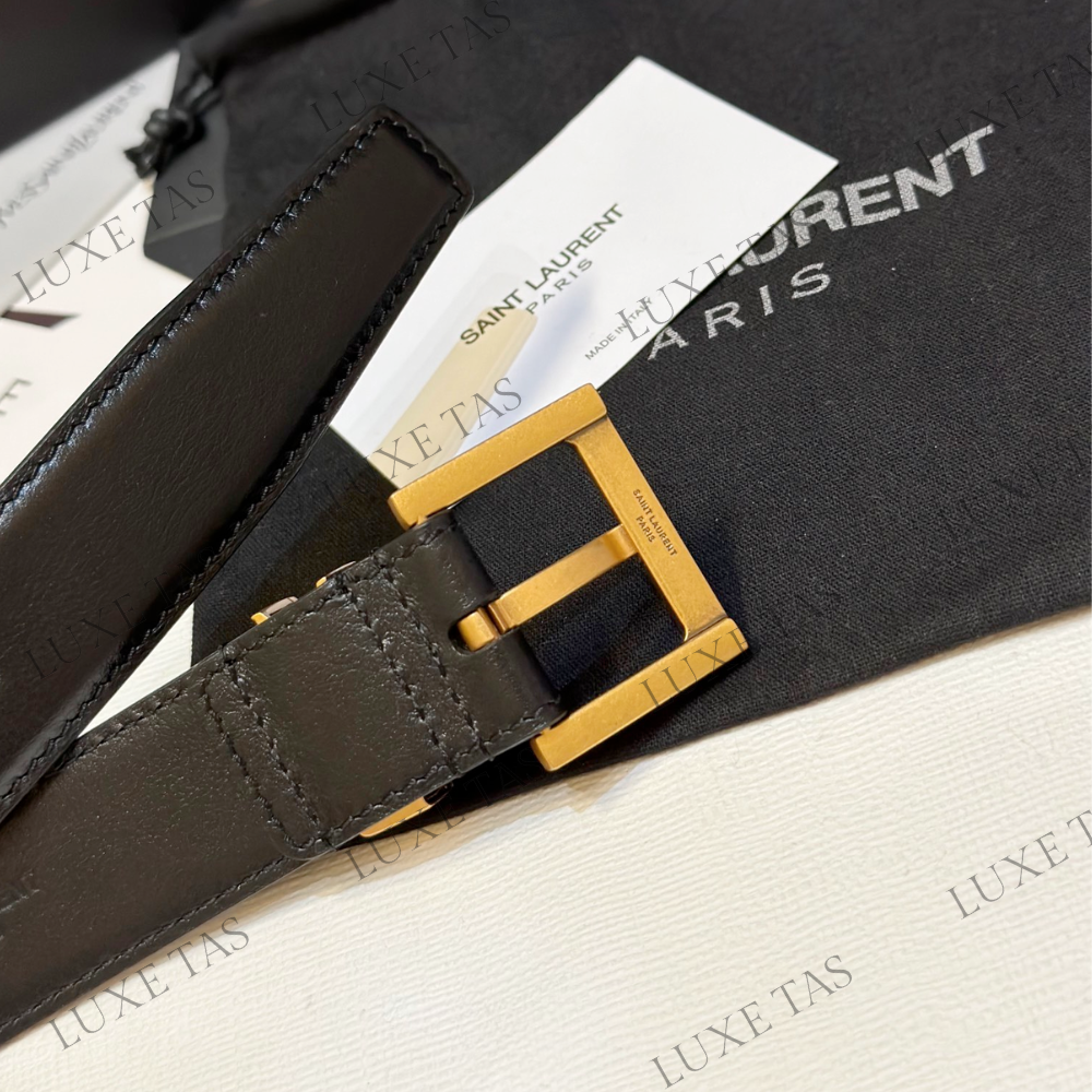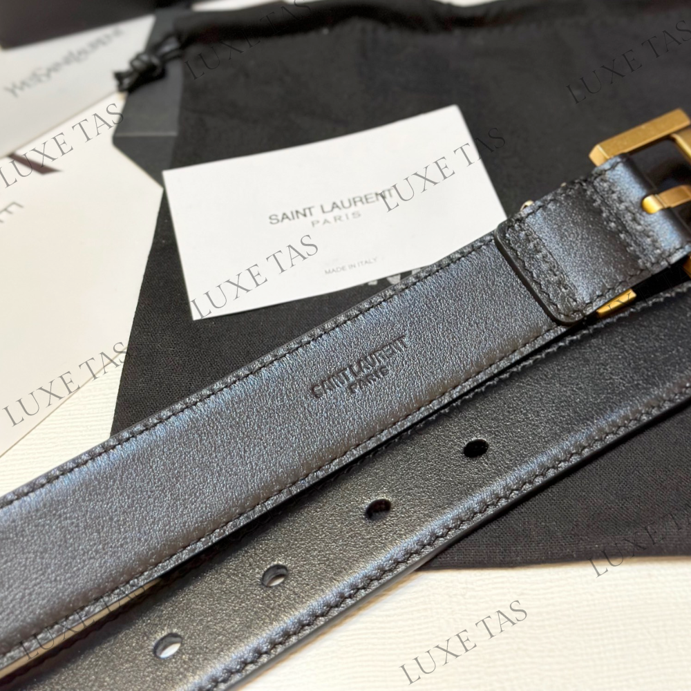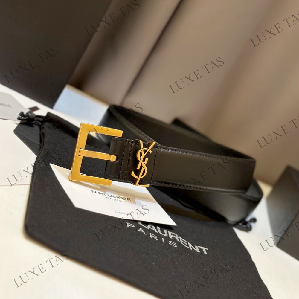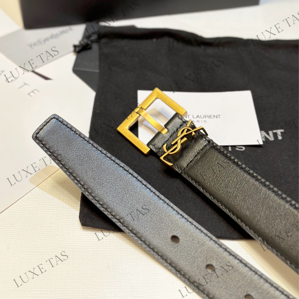 Black Cassandre Belt With Square Buckle In Smooth Leather - Designer Belts for Women