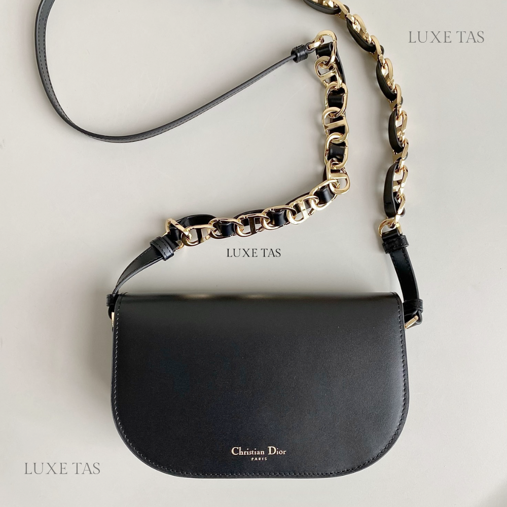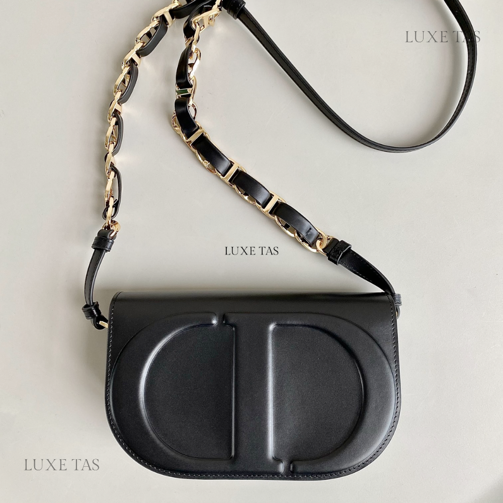 Black CD Signature Bag With Strap - Leather Crossbody Bag for Women